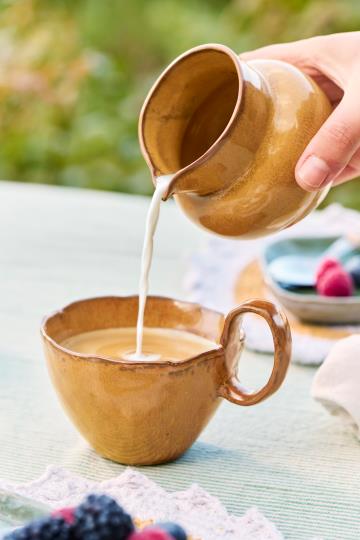 Ocean sarja võluv pruun koorekann kauni kuldse varjundiga. Reaktiivglasuur annab igale kannule ainulaadse ilme. Ideaalne piima, mahla serveerimiseks või dekoratiivse detailina laual.