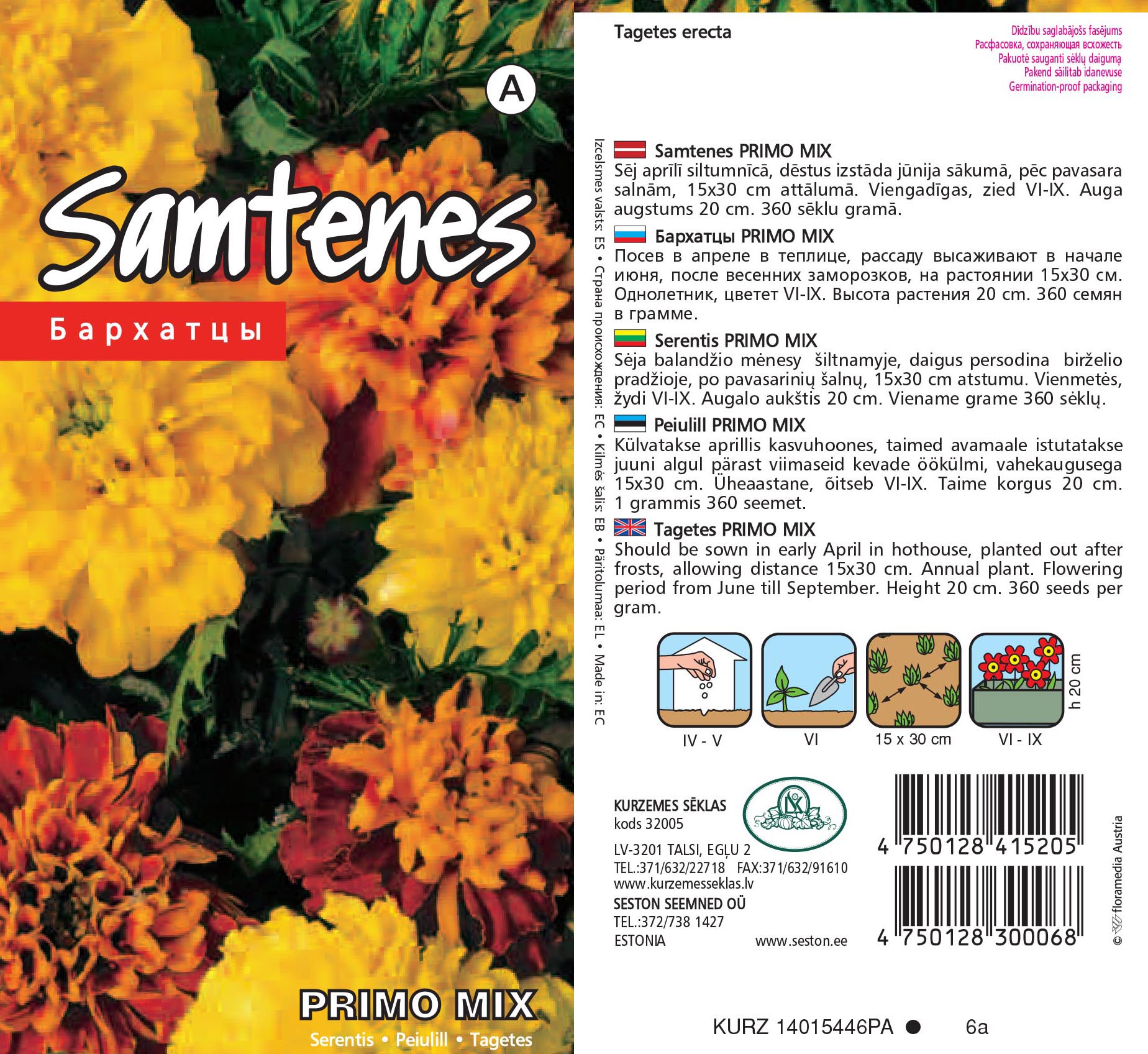 Tagetes erecta Tootja: Kurzemes seklas Tootekood: K063357