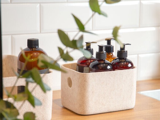 Kompaktne beež vildikorv Fay väiksemate esemete, kosmeetika, võtmete või kontoritarvete hoidmiseks. Pehme vilt on kerge ja vaikne igapäevases kasutuses.