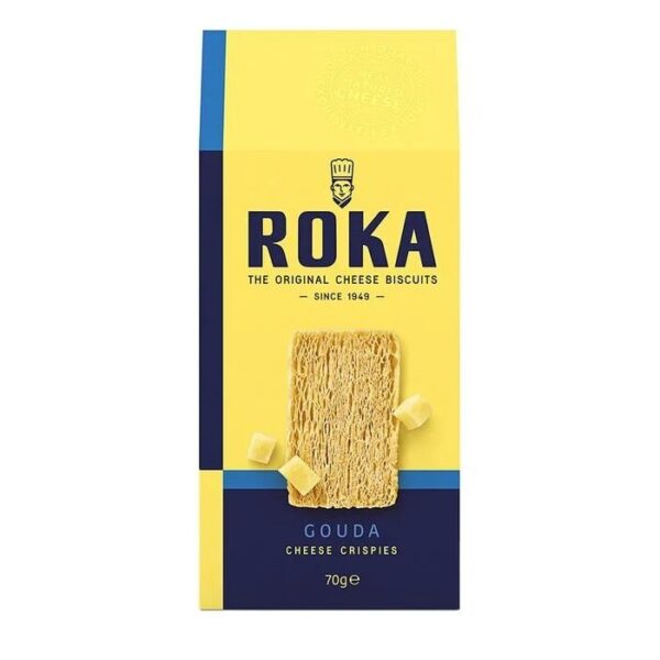Käsitööna valmistatud krõbedad küpsised Gouda juustuga 70 g. ROKA krõbedad juustuküpsised on klassikaline maius, mis ühendab ehtsa Gouda juustu rikkaliku maitse ja kuldpruuni krõbeda tekstuuri. Valmistatud käsitööna vähemalt 30% juustusisaldusega, sobivad need suupisted suurepäraselt nii peolauale kui ka argipäeva maiuspalaks.