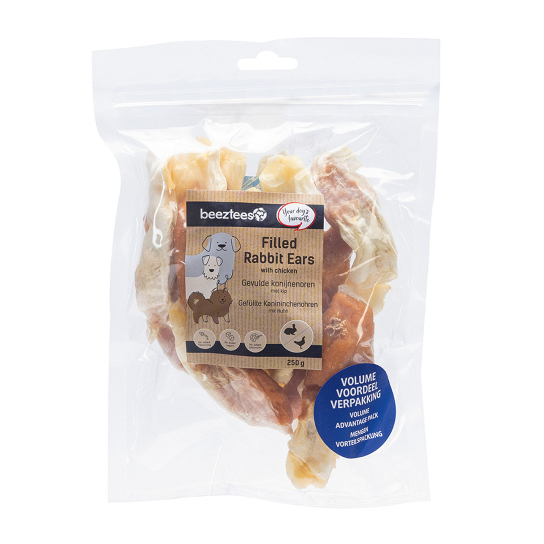 Kuivatatud küülikukõrvad kanalihaga, 250 g. Maitsev ja täiesti looduslik koertemaius, mis ühendab küülikukõrvade tekstuuri ja kanalihaga täidise meelitava maitse. Sobib eriti hästi keskmistele ja suurtele koeratõugudele. Närimine ergutab sülje tootmist, mis omakorda aitab puhastada hambaid ja toetab suuhügieeni.