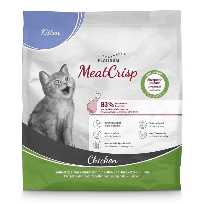 MeatCrisp on esimene täisväärtuslik kuivtoit kassidele, mis on valmistatud värskest lihast: liha kuivatatakse Freshmeatdryer meetodil madalal kuumusel ja pidevalt ringlevas õhus. Nii säilivad toidus värske liha looduslikud mikroelemendid ja aminohapped. Tänu suurele toiteväärtusele asendab MeatCrisp täistoit kassi loomupärast jahisaaki paremini kui enamik jaekaubanduse kassitoidud. Sinu kass saab nautida toitu, mis on tasakaalustatud, maitsev ja tervislik.