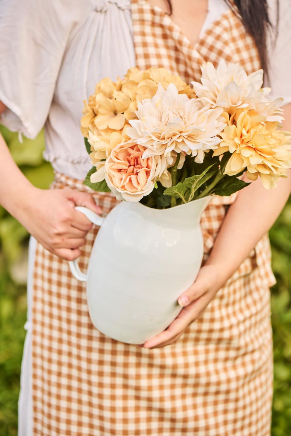 Kunstlill hortensia elegantses kuldses toonis loob luksusliku ja hubase atmosfääri. Roheliste lehtedega realistlik kunstlill kaunistab iga ruumi ajatu iluga.