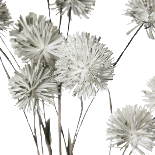 Silmapaistev kunstlill „ohakas“ hallis toonis lisab interjööri rahulikku elegantsi ja loodusest inspireeritud ilu. Kvaliteetsest vahtmaterjalist valmistatud õis on vastupidav ning säilitab oma vormi ja värvi ka ilma vee või päikesevalguseta. Kuna lill ei sisalda õietolmu, sobib see suurepäraselt ka allergikutele.