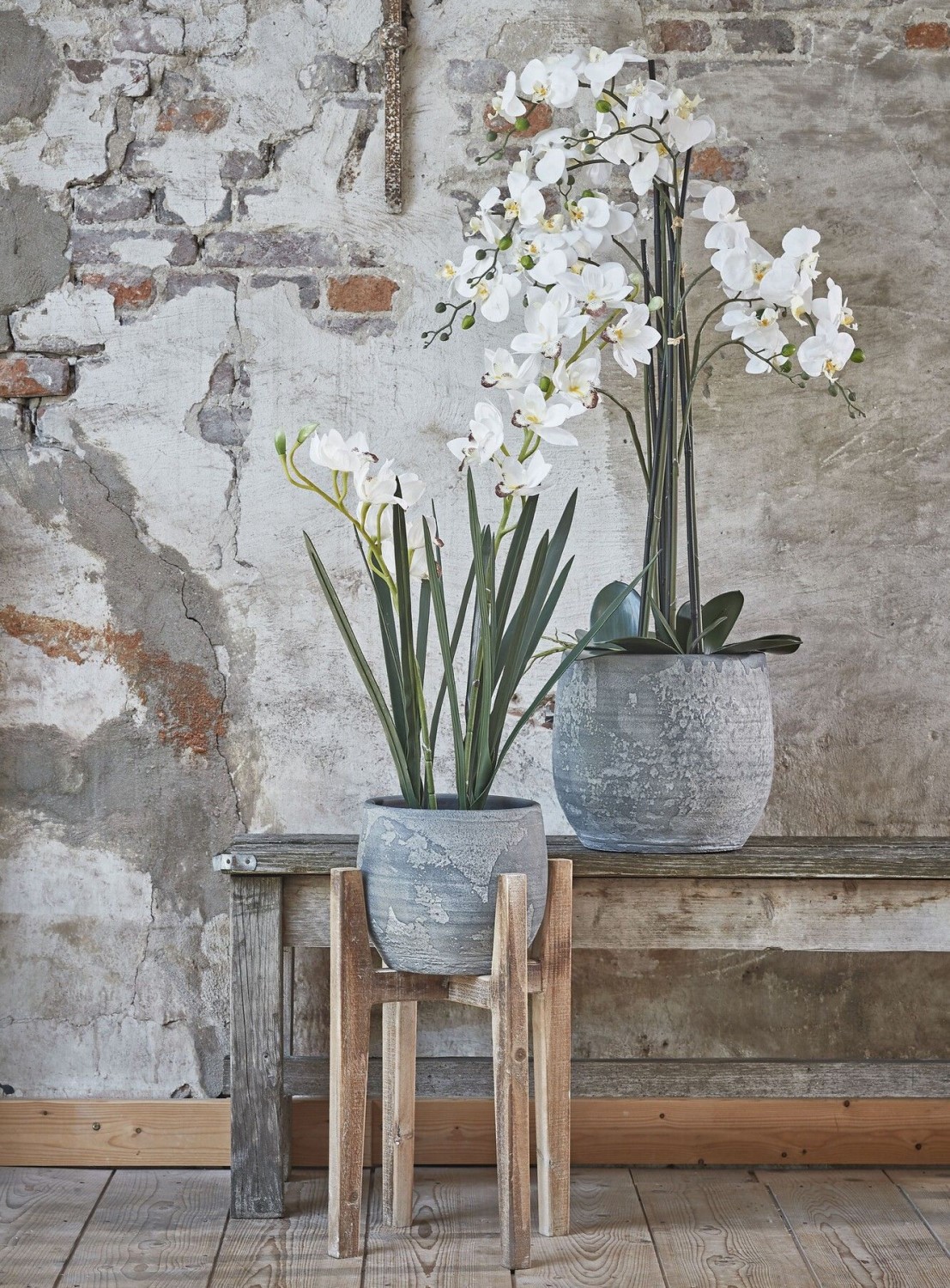 Valgete õitega Phalaenopsis kunstlill on kõrge ja mitme varrega taim, mille kaarduvad õievarred annavad sellele kerge ja tasakaalustatud ilme. Õied on kujundatud nii avanenud kui ka pungadena, mis jätab loomuliku üldmulje.