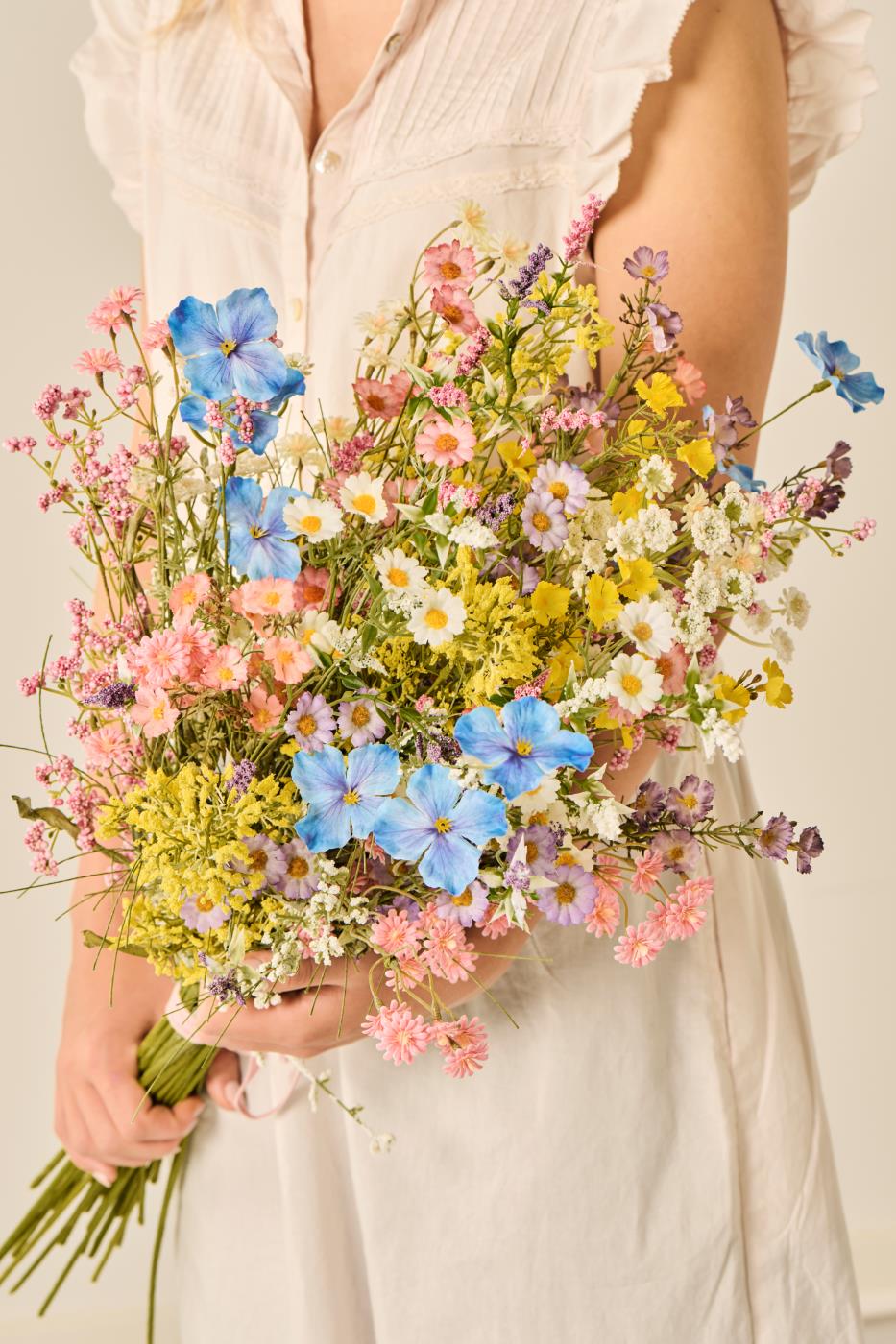 Dekoratiivne kunstlill siniste õitega toob sisekujundusse rahuliku ja elegantse noodi. Loomuliku välimusega lill sobib ideaalselt teiste lilledega kombineerimiseks või eraldiseisvaks kaunistuseks.