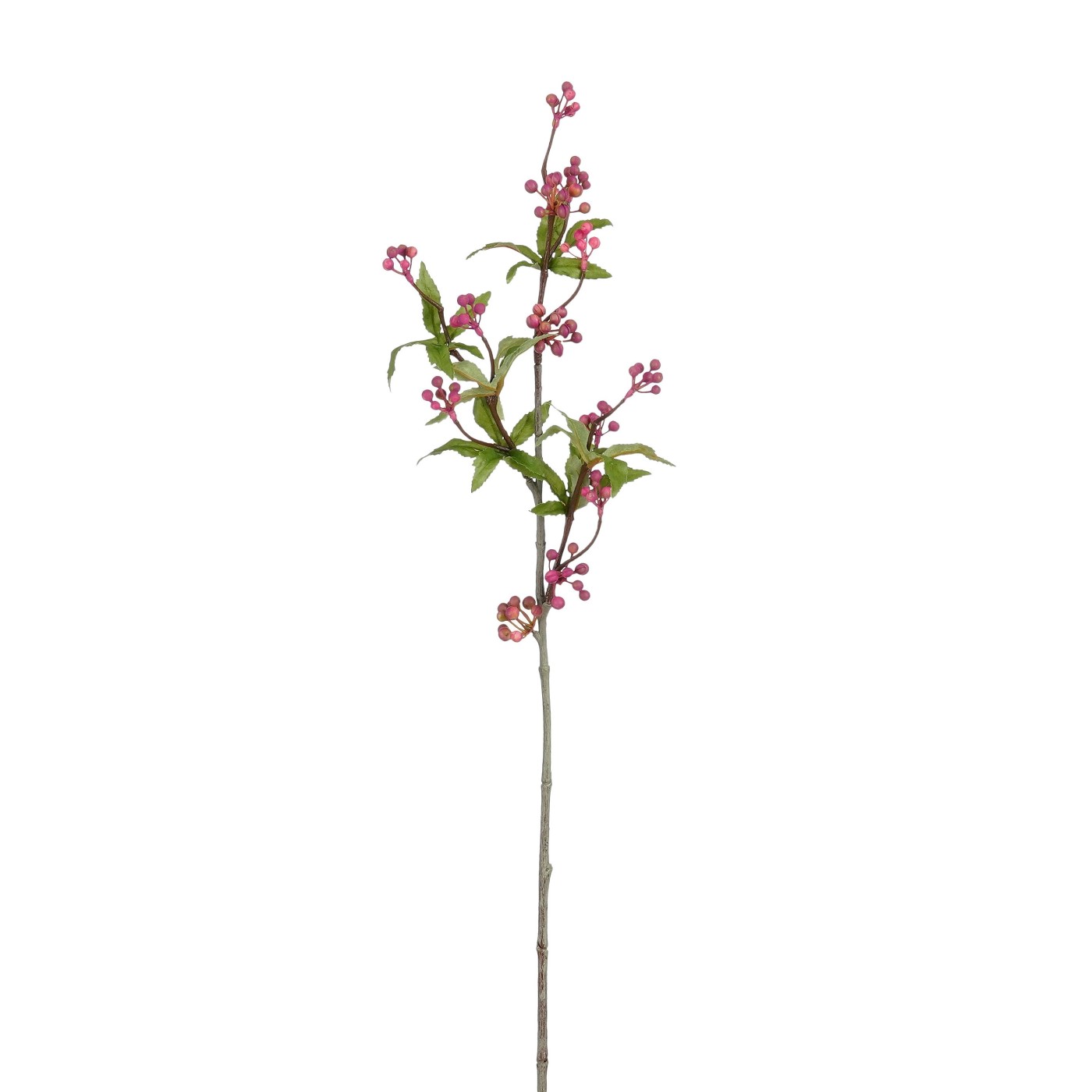 Dekoratiivne kunstoks lillade marjadega, mis lisab sisekujundusse värvi ja looduslähedust. Lopsakad marjad koos roheliste lehtedega loovad värske ja elava üldmulje, sobides hästi nii jõuluseadetesse, pärgadesse kui ka vaasi eraldiseisva kaunistusena.