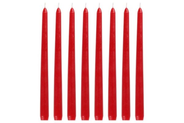 Materjal: parafiin Pakis 8 küünalt Põlemisaeg: 8 tundi Läbimõõt: 20mm Kõrgus: 250mm Värvus: punane