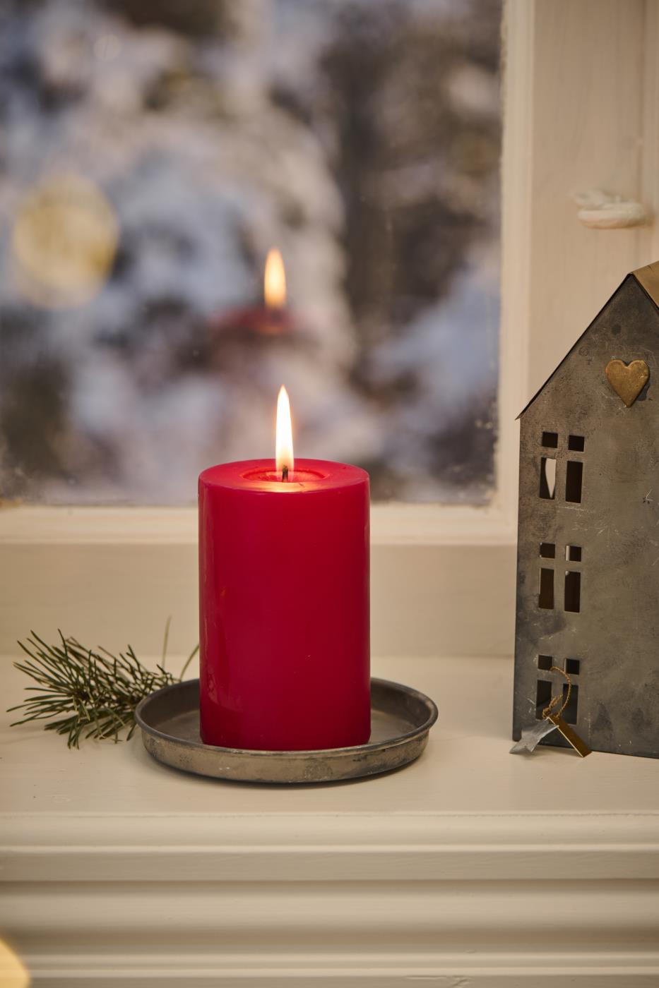 Materjal: parafiin Läbimõõt: 6cm Kõrgus: 10cm Värvus: tumepunane Põlemisaeg: 36 tundi