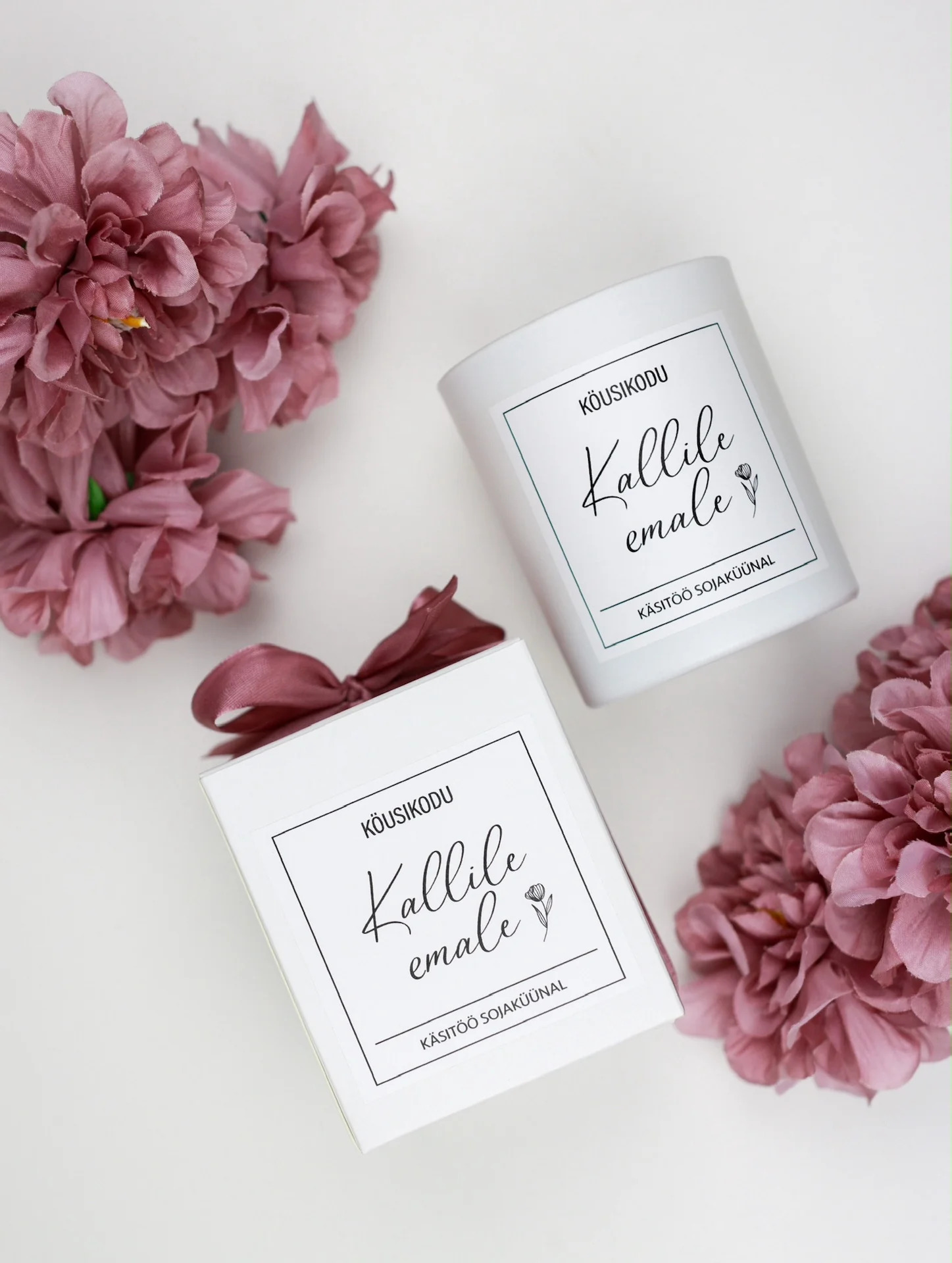 Küünal “Kallile emale” (40–50 tundi) – sõnumiga lõhnaküünal karbis. 100% naturaalsest sojavahast valmistatud küünal on rikastatud kõrgkvaliteetsete lõhnaõlidega, mis on IFRA sertifitseeritud. See tagab küünla ohutu ja tervisesõbraliku kasutamise.