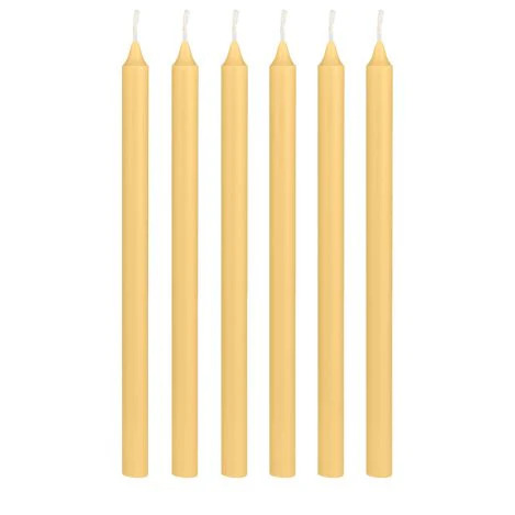 • Materjal: steariin ja parafiin. • Kõrgus: 20 cm. • Läbimõõt: 1,3 cm. • Värvus: kollane. • Põlemisaeg: kuni 3 tundi. • Sobib erinevatesse küünlajalgadesse.