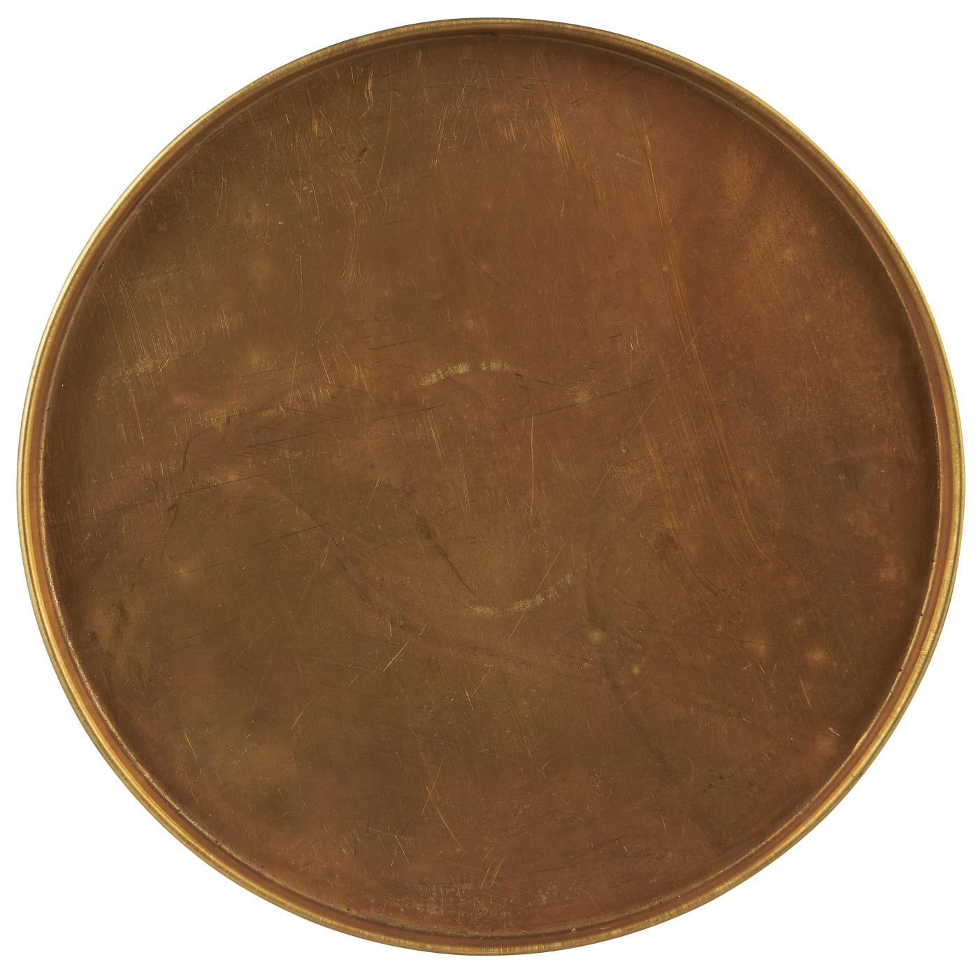 Materjal: messing Läbimõõt: 22cm Kõrgus: 1,2cm Värvus: kuldne