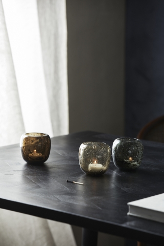THEO küünlahoidja sobib teeküünaldele või väikestele sammasküünaldele. Klaasi pind on kaetud tupsuefektidega, mis on osa selle disainist.