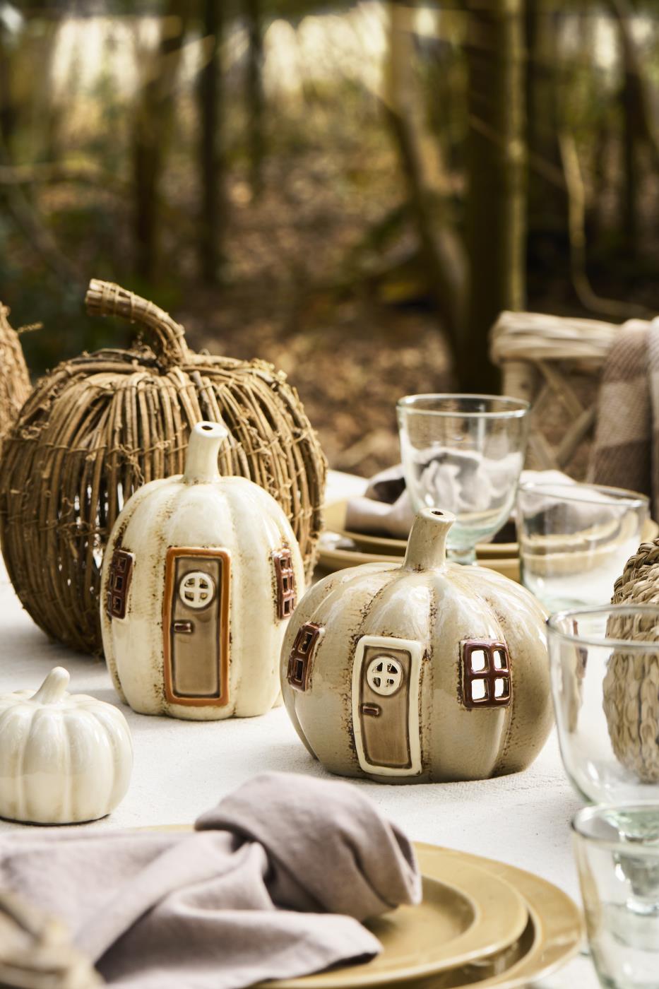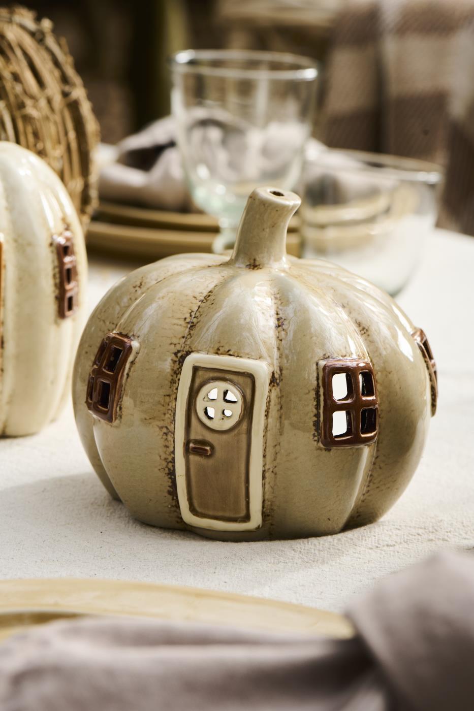 Küünlahoidja kõrvitsast maja 15x15x h14cm kreem