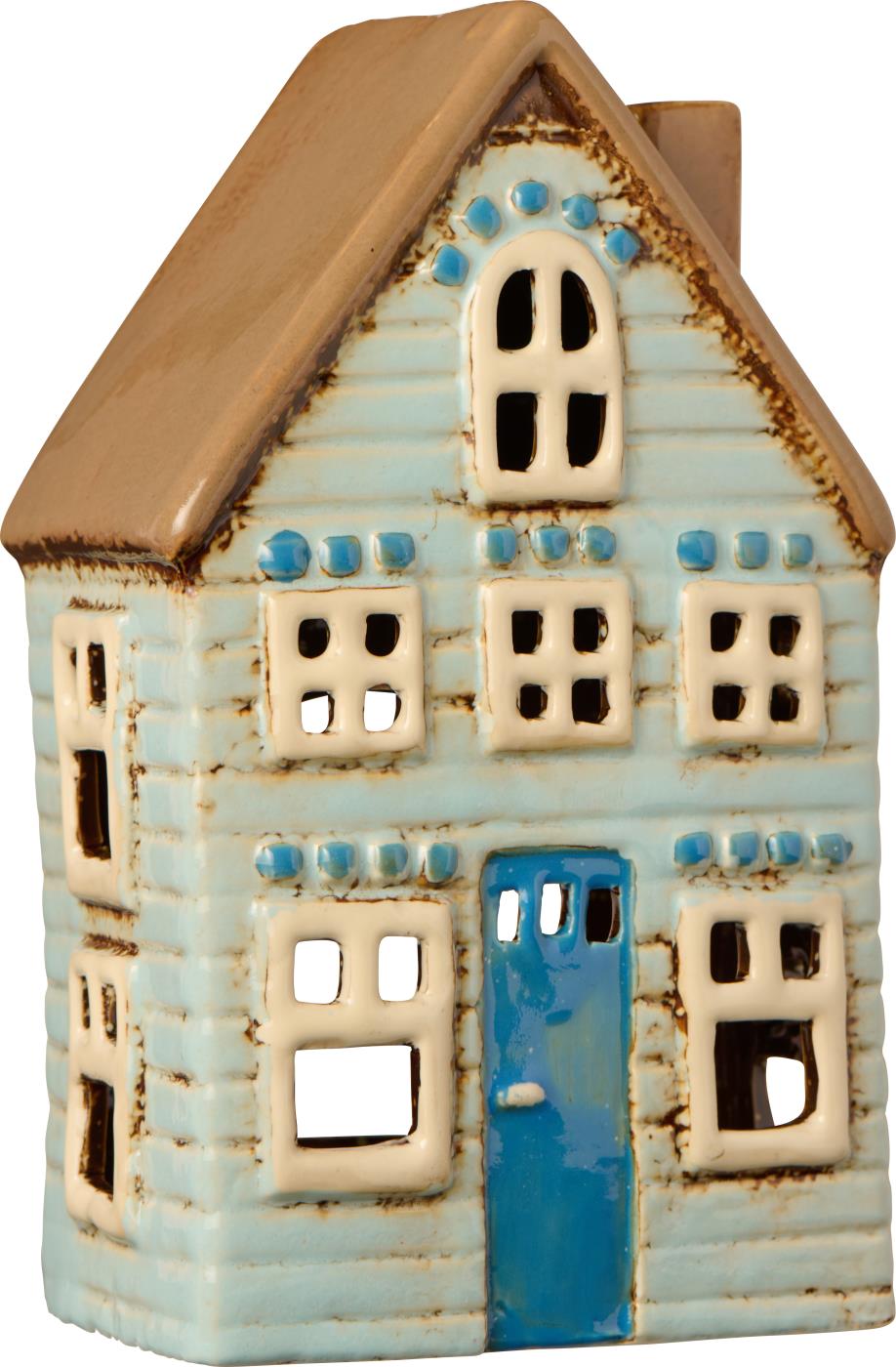 • Materjal: keraamika. • Kuju: maja. • Laius: 7,7 cm. • Kõrgus: 19 cm. • Pikkus: 11 cm. • Värvus: sinine.