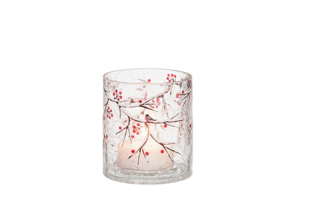 Küünlahoidja oks punaste marjade ja leevikesega d9x h10cm klaas