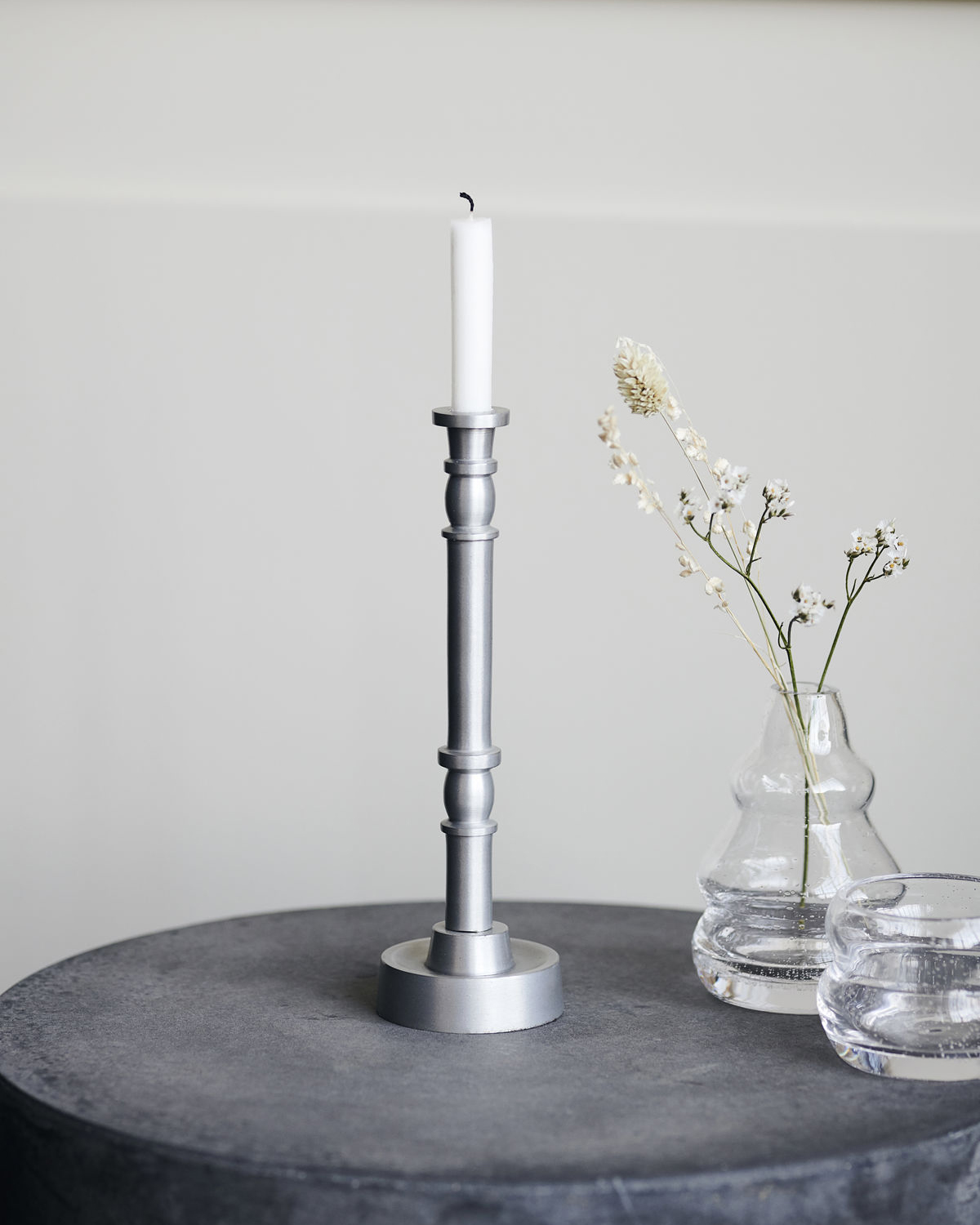 Materjal: alumiinium, raud Kõrgus: 20cm Läbimõõt: 6cm Sobib küünlale läbimõõduga: 1,2cm