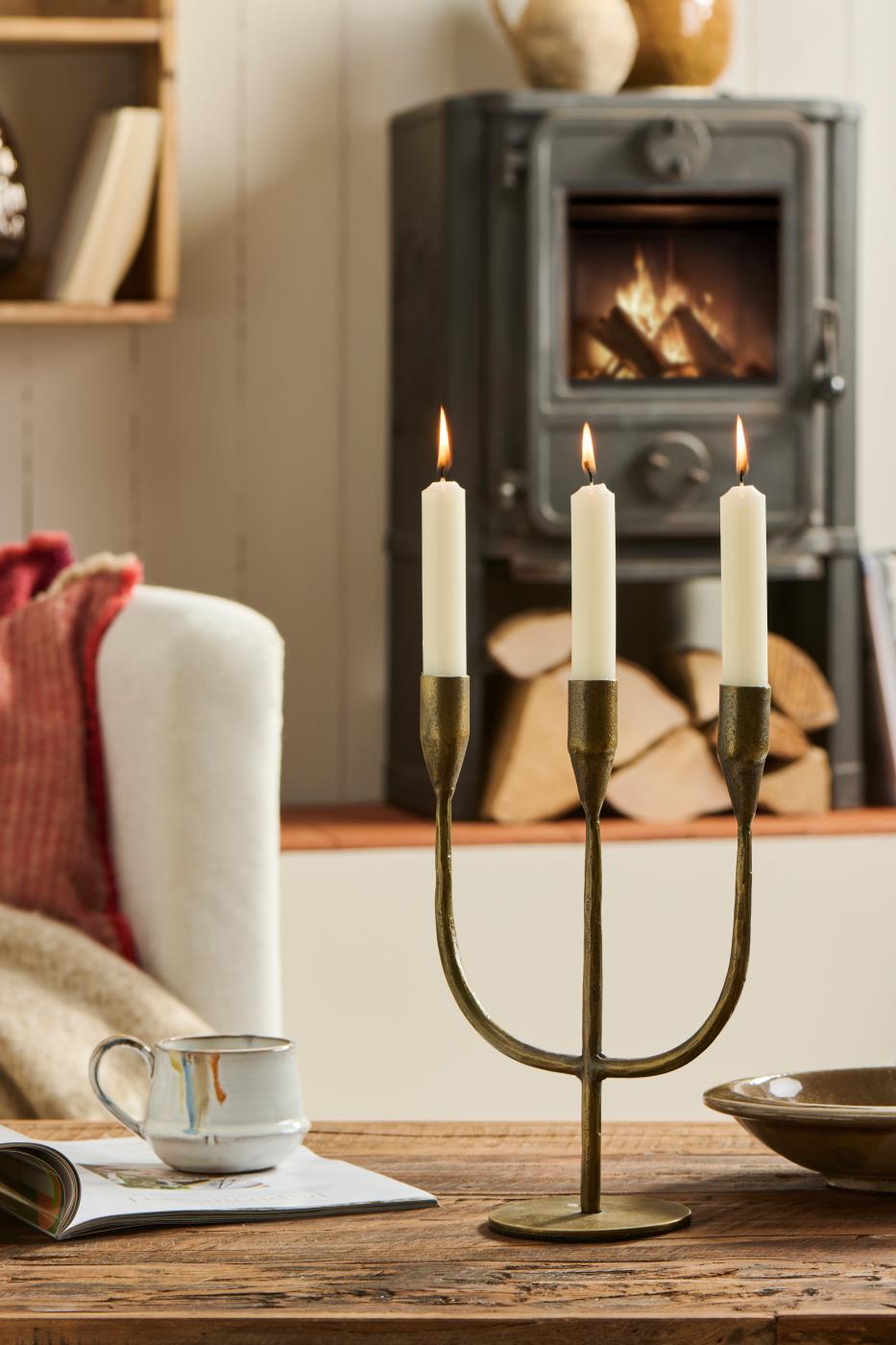 Elegantne kolmekohaline küünlajalg Melilla sarjast, mis on valmistatud alumiiniumist ja viimistletud kuldse, veidi rustikaalse pinnaga. Klassikaline vorm lisab interjöörile rahulikku ja ajatult stiilset aktsenti. Sobib nii pidulikule lauale kui ka igapäevaseks sisekujunduseks.