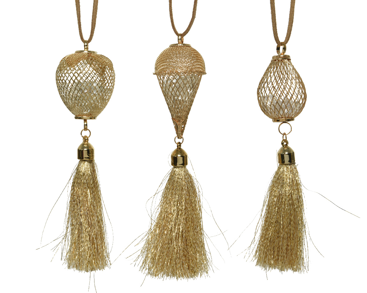 Kuuseehe kuldne rippuv 3,5x h23cm klaas erinevad, 1tk