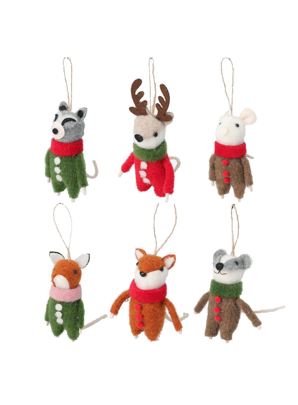 Toredad metsloomad, kes toovad kuusele või aknakaunistusse lustaka metsatunde! Iga loomake on 10 cm kõrgune, kerge ja detailirohke, valmistatud pehmest materjalist ning kaunistatud soojade sallide ja nööbikestega. Sobivad suurepäraselt kingituseks, kuuseehteks või väikseks jõulutervituseks.