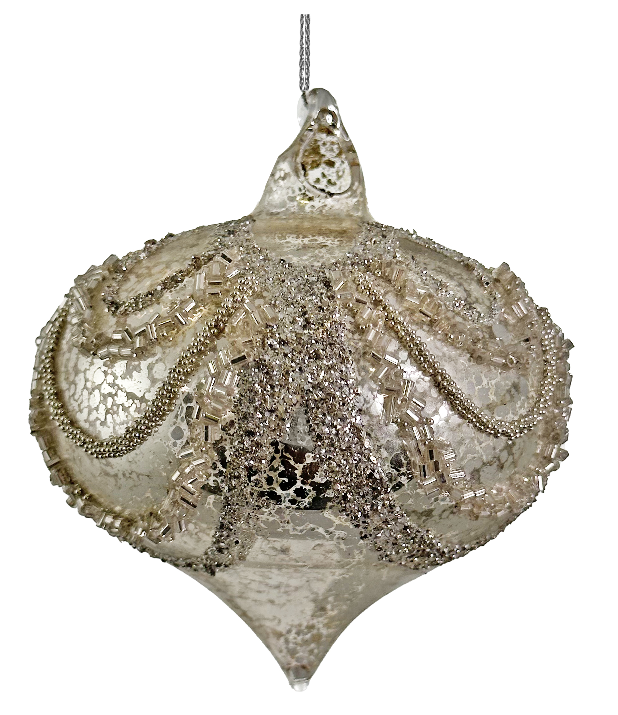 Kuuseehe onion pärlitest vanikutega d8cm klaasist, hõbedane