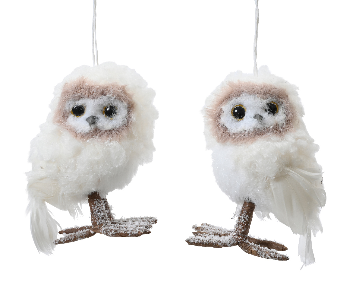 Kuuseehe öökull küljega, lumised jalad 9x7x h13cm kreem 1tk, erinevad