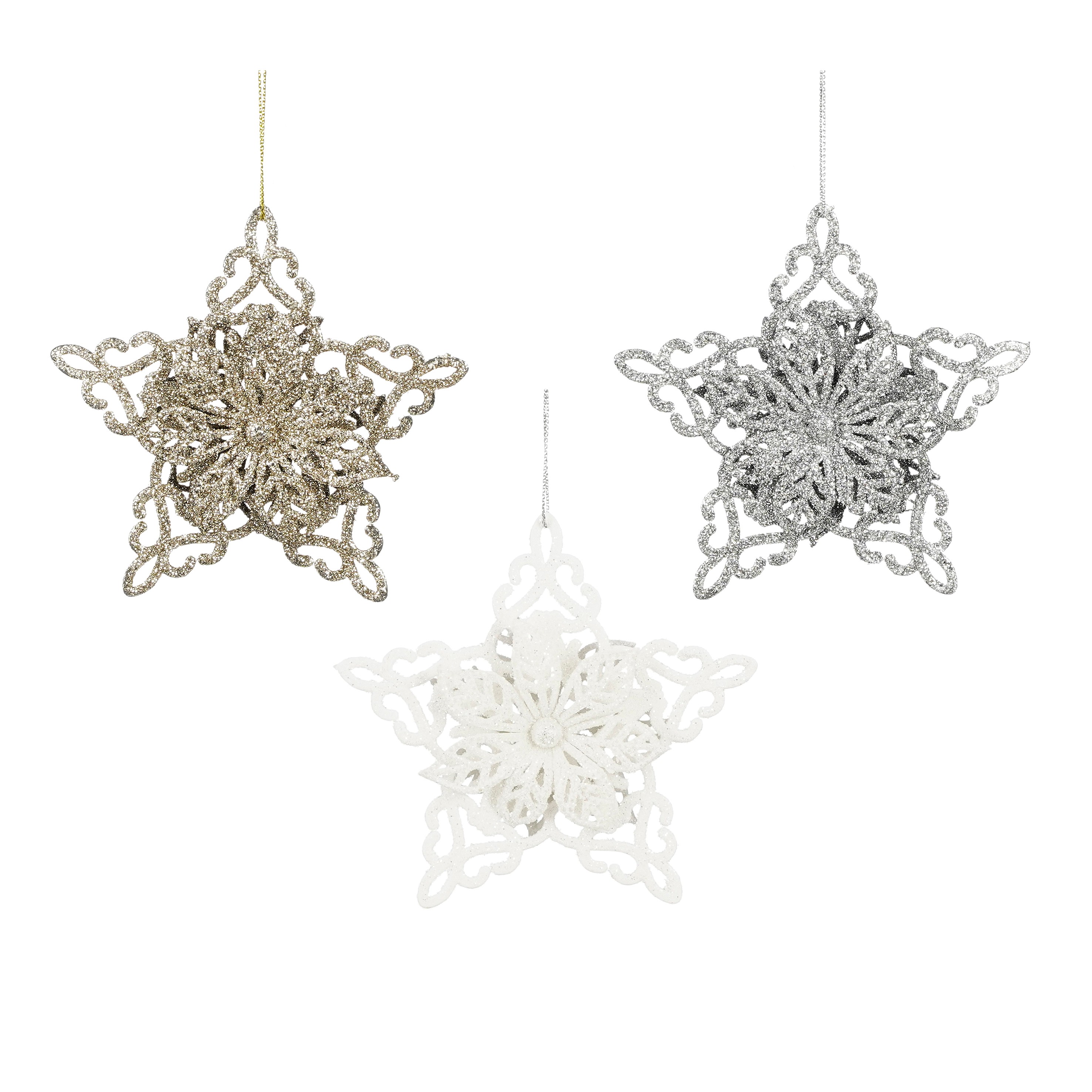 Kuuseehe täht 1x d11cm valge/shamp./hõbedane mix