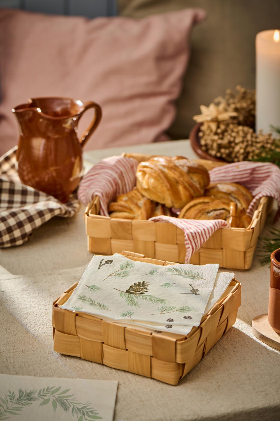 Väike nelinurkne laastukorv sobib suurepäraselt näiteks võtmete, ehetekarpide või väiksemate esemete hoiustamiseks. Korv on valmistatud männilaastudest ning selle käsitsi punutud vorm toob ruumi looduslähedust ja soojust.