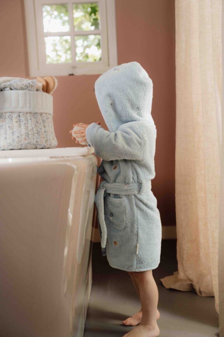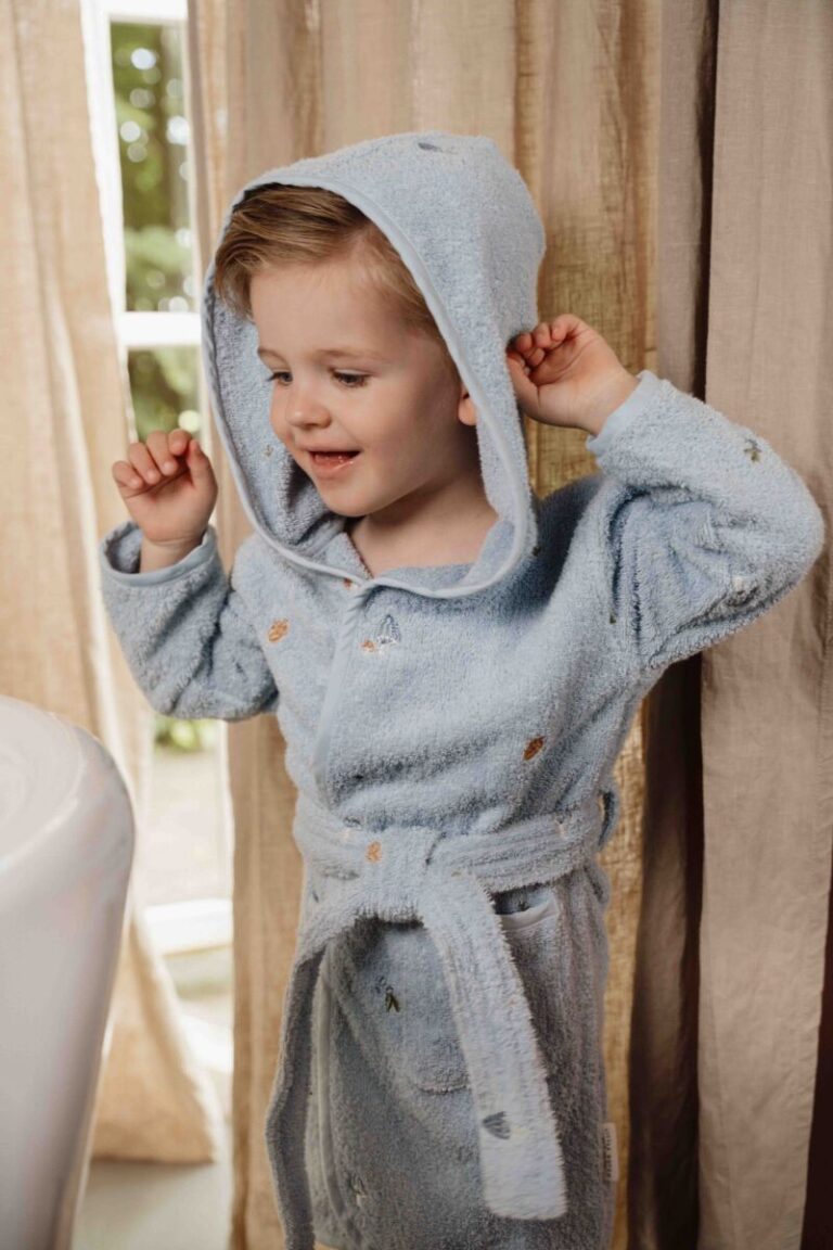 Pärast mängulist päeva on Little Dutch’i hommikumantlisse mähituna mõnus nautida hubaseid hetki. See 100% orgaanilisest puuvillafroteest valmistatud hommikumantel pakub erakordset pehmust ja imavust, hoides teie lapse pärast vanniskäiku kuivana ja soojana. Hommikumantel on varustatud läbimõeldud vööga ning nööbiga, mis tagab liikumisvabaduse ja mugava soojuse. Armsa helesinise värvusega hommikumantel on kaunistatud Forest Friends kollektsiooni võluvate tikanditega, kus väikesed seened lisavad sellele juurde metsa lummavat võlu.