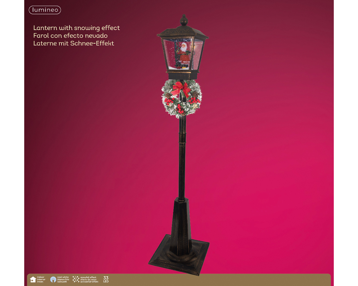 Dekoratiivne latern loob muljetavaldava talvise meeleolu tänu langeva lume efektile ja külmvalgetele LED-tuledele. Klassikaline antiikmessingi toonis disain muudab laterna kauniks sisustuselemendiks, mis toob tuppa pühademeeleolu ja talvise võlu.