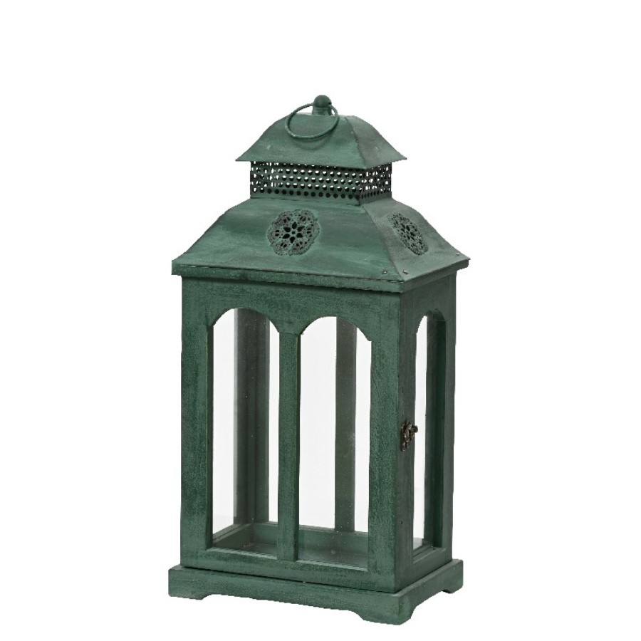 Roheline puidust latern loob hubase ja maalähedase meeleolu nii siseruumides kui ka terrassil. Metallist ülaosa on kaunistatud lillelõigetega, mille vahelt kumav küünlavalgus loob kauni valgusmängu. Klaasist külgpaneelid kaitsevad leeki ja toovad laterna detailid esile. Sobib suurepäraselt õhtuste hetkede valgustamiseks või dekoratiivseks sisustuselemendiks.