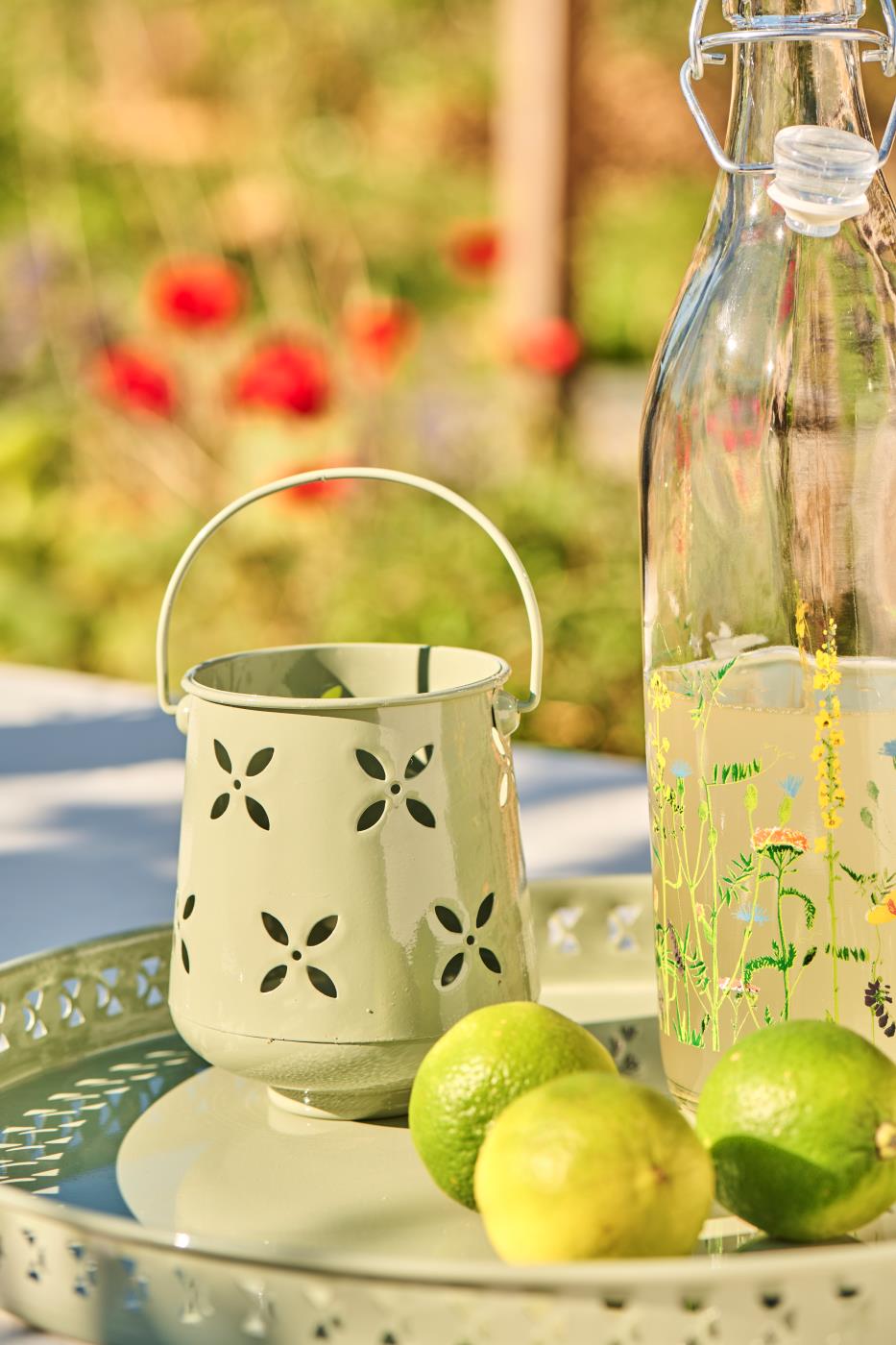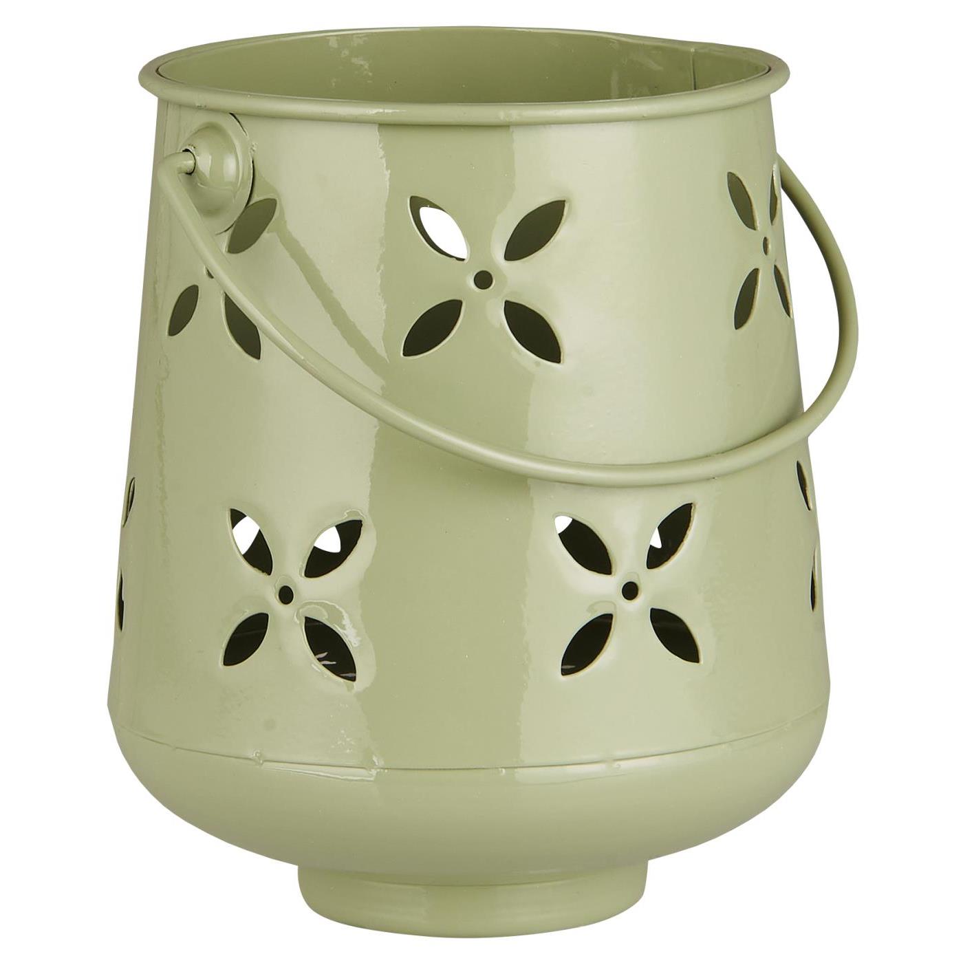 Roheline latern teeküünlale. Klassikalise disainiga metallist latern, mis loob hubase atmosfääri nii siseruumides kui ka õues. Tänu praktilisele sangale on seda lihtne liigutada ja riputada. Sobib ideaalselt teeküünaldele, lisades õrnalt kumava valgusega soojust igasse õhtusse.