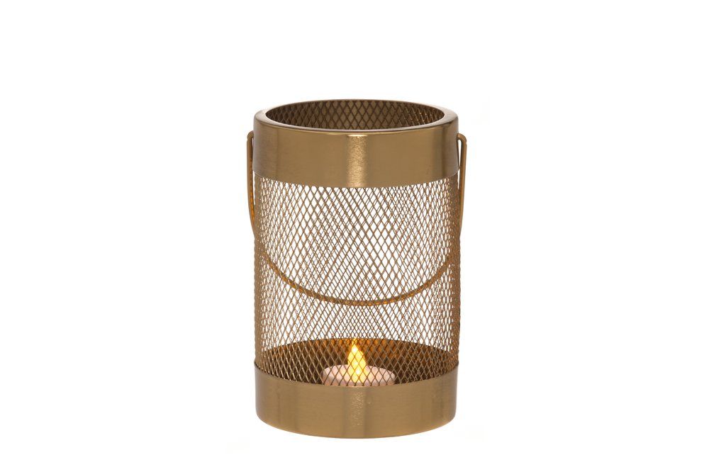 Elegantse disainiga kullavärvi metallist latern metallvõrguga.