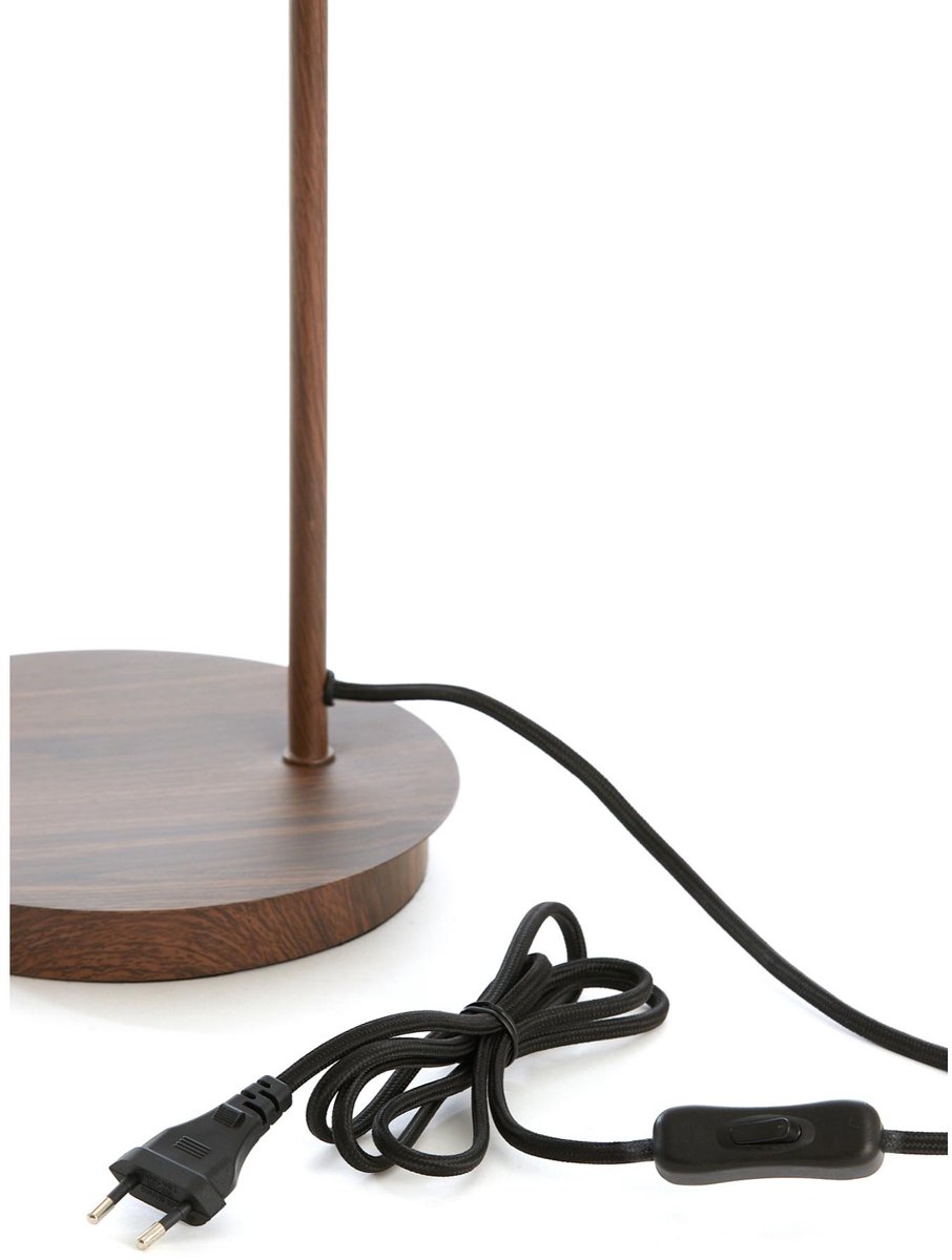 Baylie laualamp on retro ja modernse disaini tasakaalustatud kooslus. Ribilise viimistlusega pruun klaasvari kiirgab sooja kuma ja annab valgusele iseloomuliku sügavuse. Kaardus metalljalg koos puiduimitatsiooniga alusega lisab disainile stabiilsust ja loomulikku võlu. See lamp sobib hästi lugemisnurka, diivani kõrvale või öökapile, pakkudes ühtaegu funktsionaalsust ja dekoratiivset aktsenti.