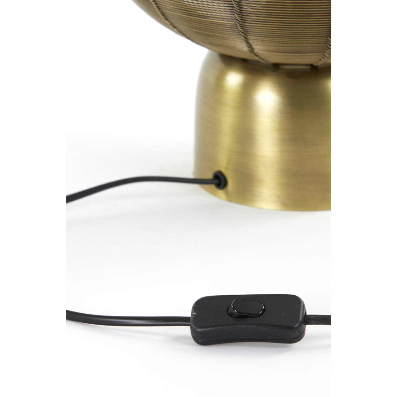 Laualamp Suneko ühendab metallist võrkkupli ja pehme pronksitooni, tuues ruumi sooja ja dekoratiivse valguse. Ümar, kergelt sibulakujuline metallvõrk laseb lambipirni valguse kaunilt läbi, luues ruumis varjude ja helkide mängu. Massiivne pronksjas alus annab lambile stabiilsuse ja lisab sellele soliidse väljanägemise.