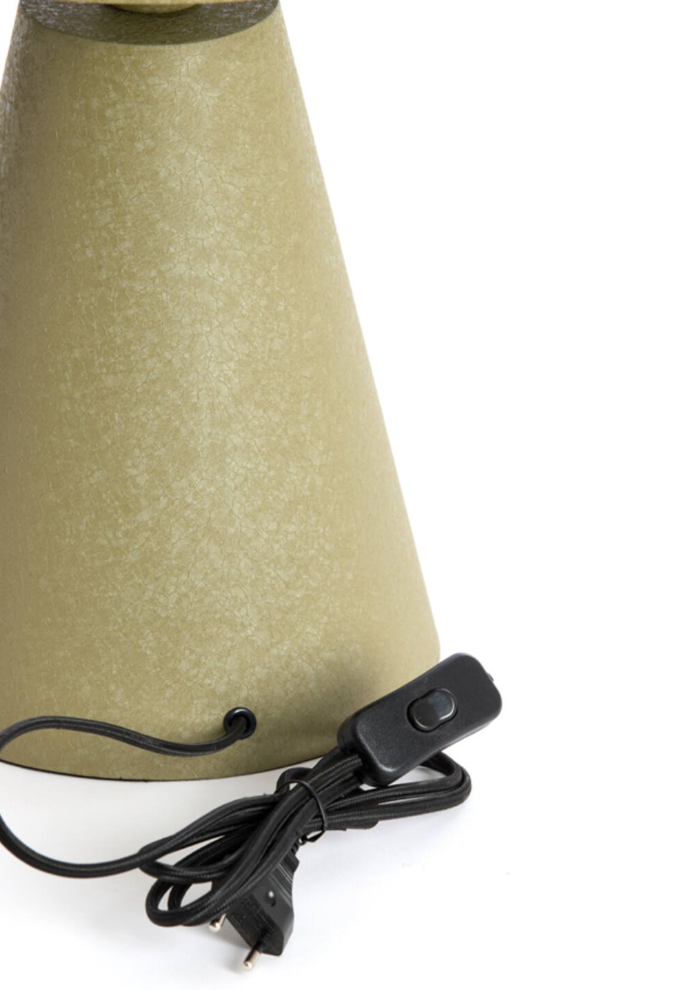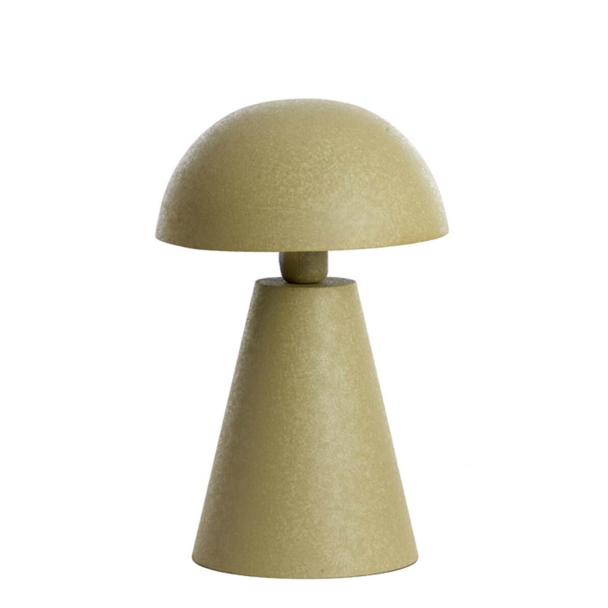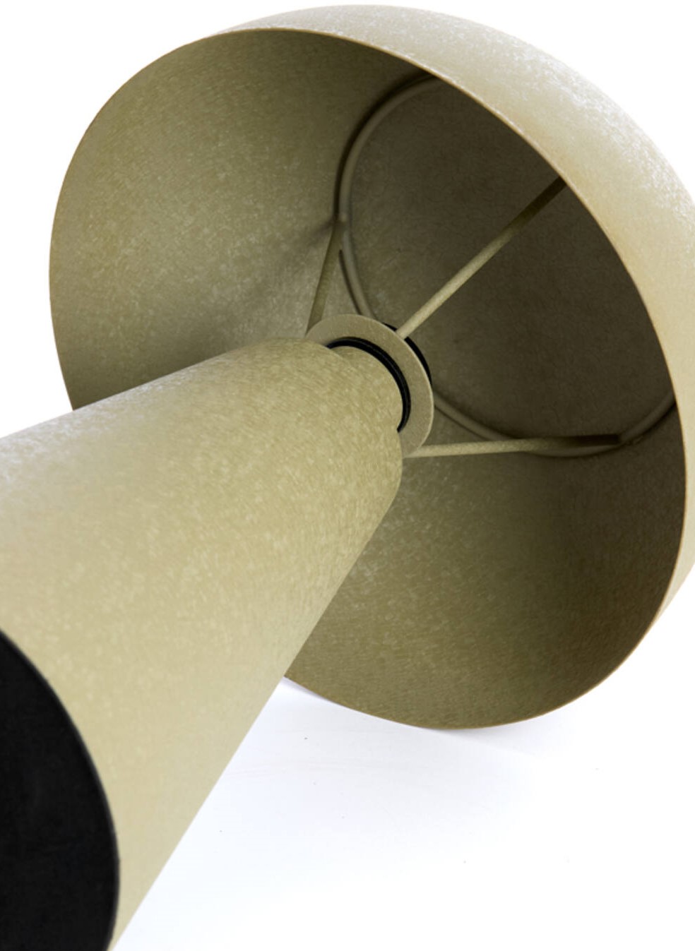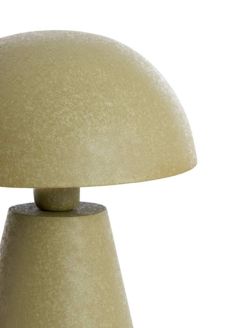 Geomeetrilise ja minimalistliku vormiga laualamp Surrina ühendab poolkerakujulise kupli ja koonilise metallist aluse, luues selge ja tasakaaluka silueti. Mattroheline viimistlus annab lampile ühtlase ja looduslähedase ilme, mis sobib hästi nii kaasaegsesse kui ka retrohõngulisse interjööri.