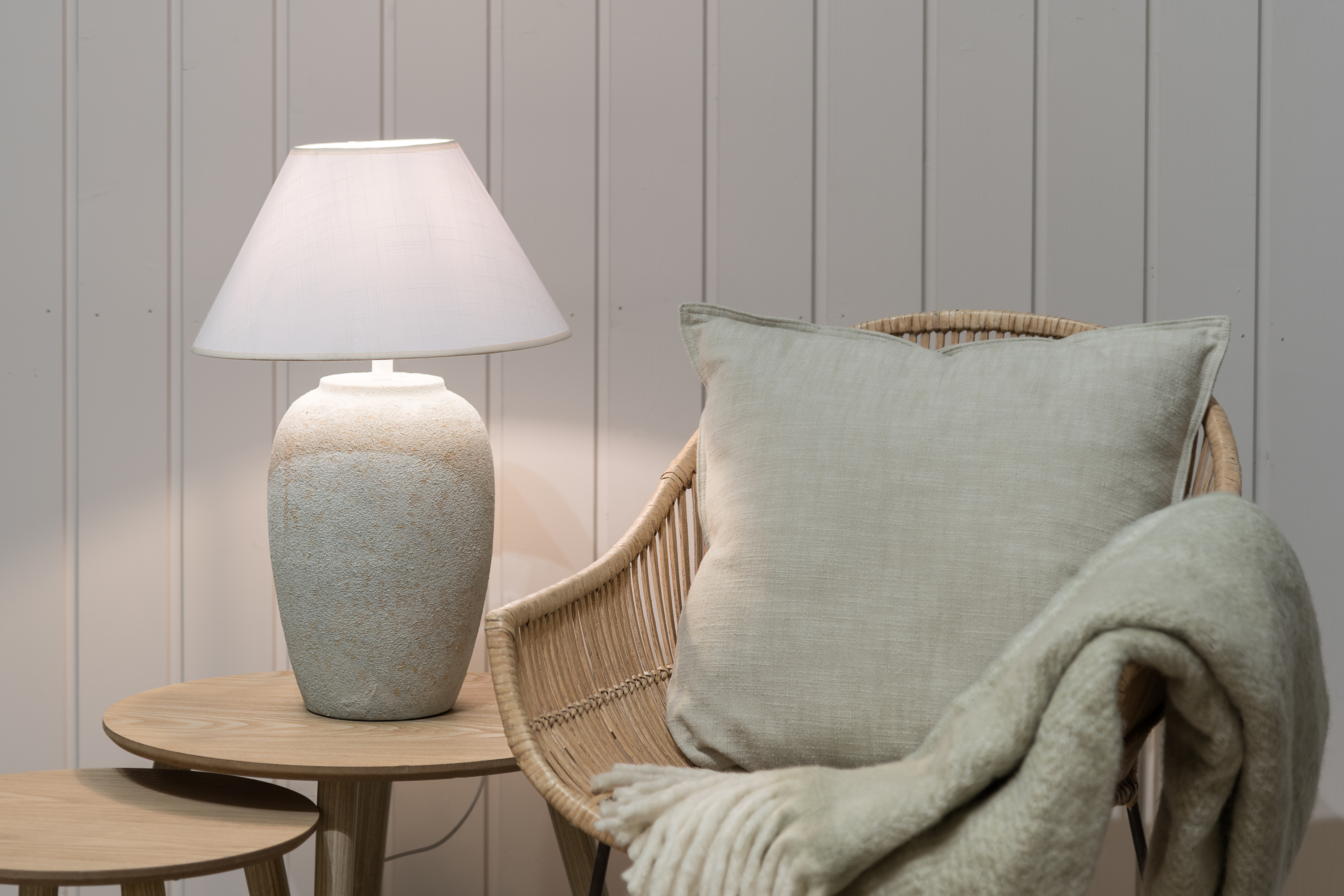 Laualambi Fanni K Tyyni keraamiline jalg avaldab muljet oma käsitsi valmistatud välimusega. Valgus filtreerub kaunilt läbi valge linase varju. Laualamp toob lugemis- või töövalguse näiteks magamistuppa, elutuppa või esikusse. Tänu stiilsele orgaanilisele disainile sobib lamp suurepäraselt paljudesse erinevatesse interjööristiilidesse.