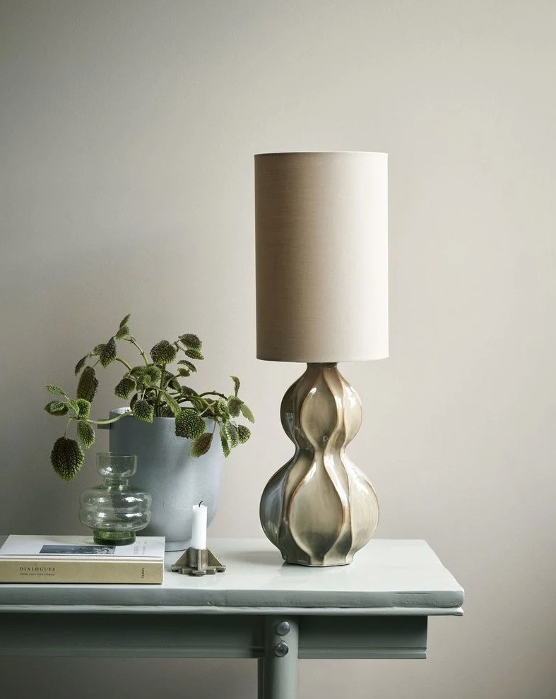 Linasest lambivari ja keraamikast põhi loovad oma neutraalsete toonidega ajatu tunde, keskendudes tasakaalule, mis tekib lina tekstuuri ja keraamika pehmete orgaaniliste vormide vahel.
