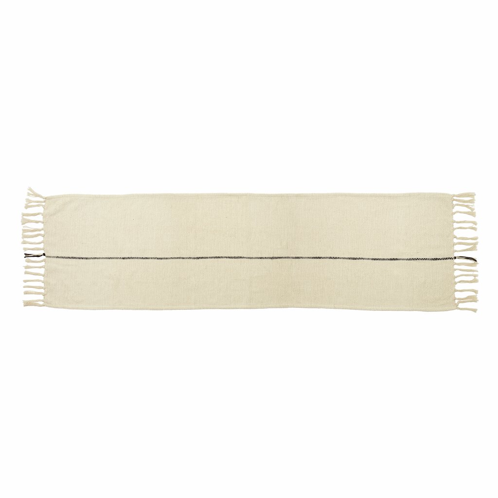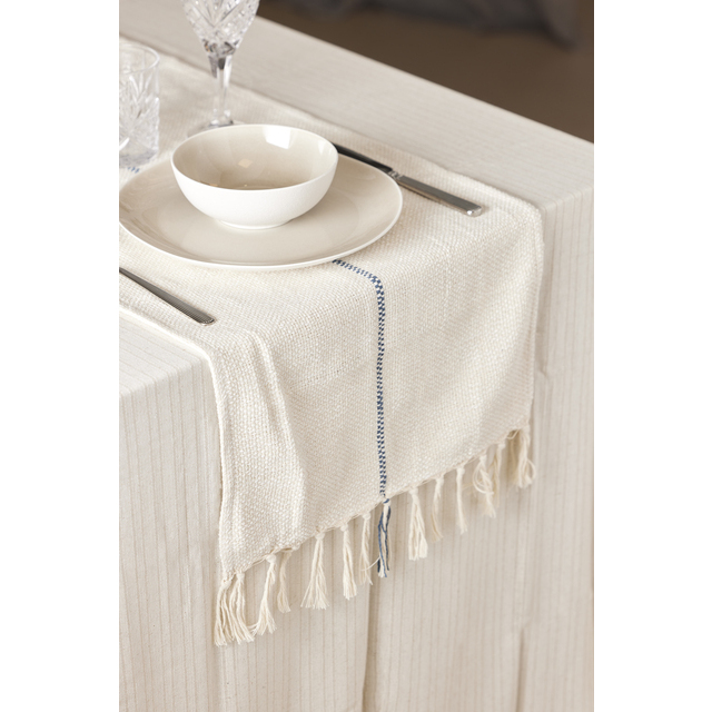 Laudlina Amala (40 × 140 cm) on lihtsa ja naturaalse ilmega dekoratiivne laualina, mis sobib kasutamiseks aastaringselt. Hele kreemikas toon on ühendatud peene tumeda triibuga ning otstes olevad narmad lisavad kattele kerget boho-stiili.