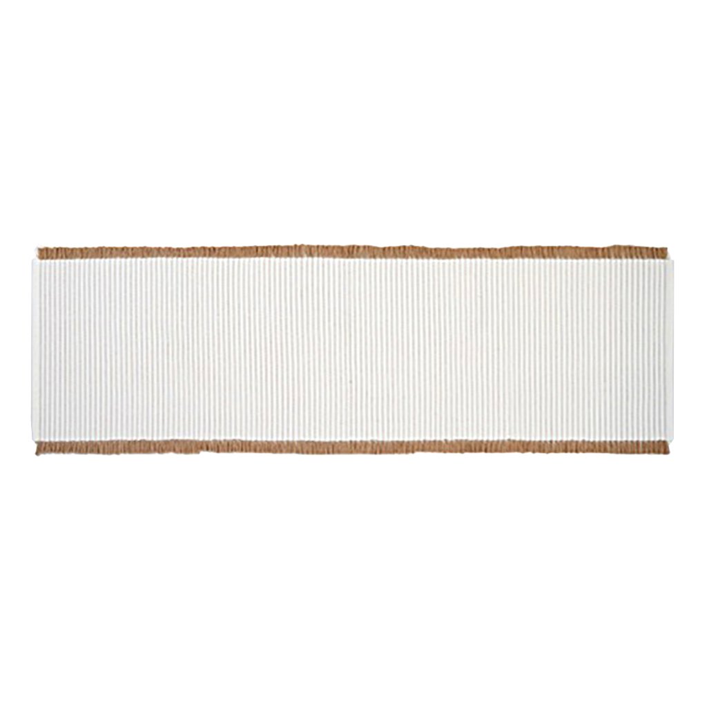 Aya laudlina (40 × 140 cm) on lihtne ja maitsekas sisustuselement, mis sobib kasutamiseks aastaringselt. Valgest puuvillast valmistatud lina on kaunistatud peente triipude ja kontrastsete narmastega servades, lisades lauakattele loomulikku tekstuuri ja soojemat ilmet.