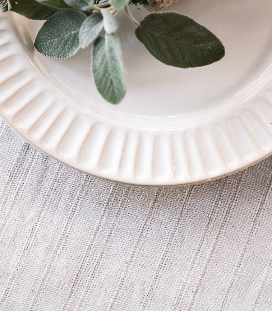 Kaunis linase värvi õhukeste dekoratiivtriipudega link. Mõõdud: 40x140cm