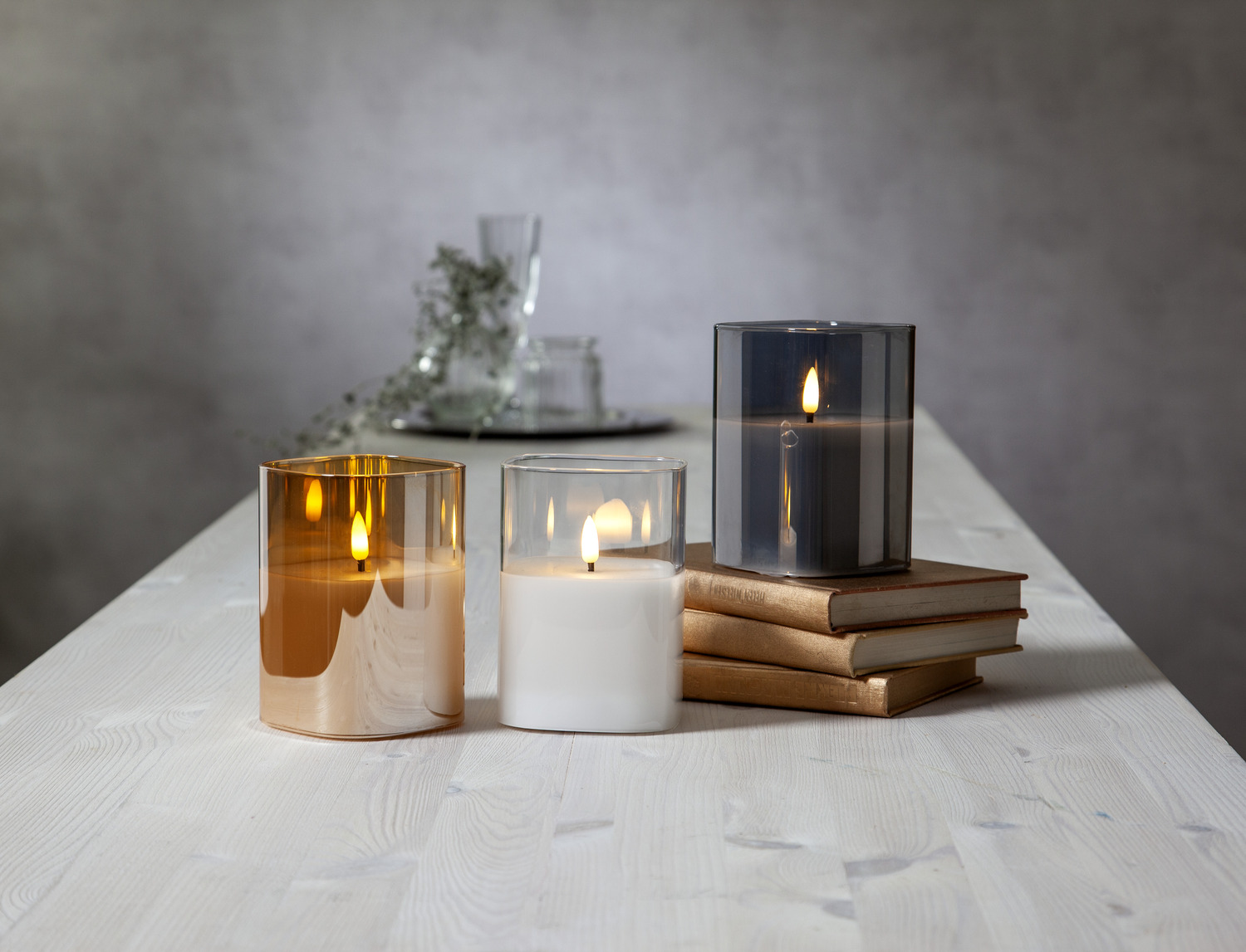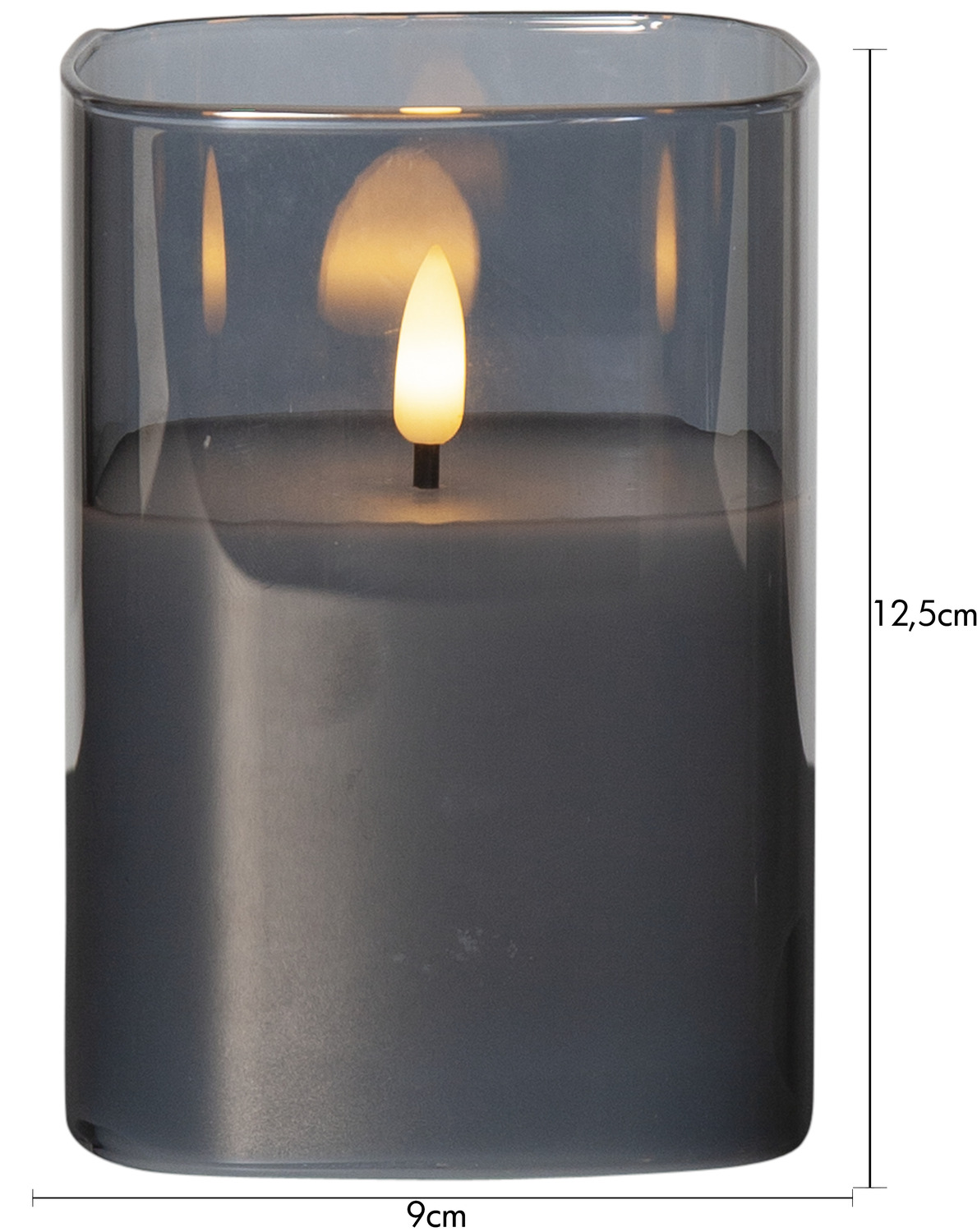Flamme Glass on LED-küünal suitsutooni läbipaistva ümbrise ja valgest vahast siseküünlaga. Soe valge valgus ning loomulikult liikuv leek loovad ehtsa ja rahuliku tulemulje. Dekoratiivne välimus sobib ideaalselt kasutamiseks nii üksikult kui ka koos teiste Flamme sarja toodetega. Sisseehitatud taimer lülitab küünla automaatselt iga päev 6 tunniks sisse ja 18 tunniks välja.