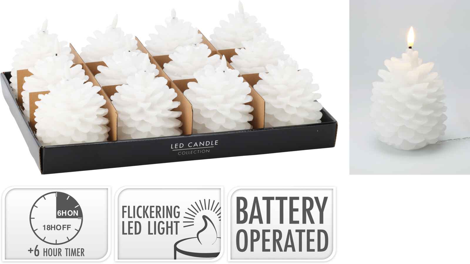 LED-küünal käbi disainiga, valge. Loo oma koju looduslähedane ja hubane meeleolu selle käbikujulise LED-küünlaga. Küünal on varustatud sooja valge vilkuva leegiefektiga, mis näeb välja nagu päris leek, kuid on täiesti ohutu ja suitsuvaba. Kaunis valik hooajaliseks kaunistamiseks, sobib nii laua keskele, aknalauale kui ka jõuluseadete täiendamiseks.