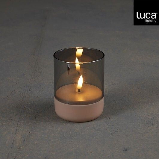 Luca Lighting LED-küünal sooja tooniga valgusega, mis jäljendab päris leegi liikumist. Suitsutooniga klaas ja matt alus annavad küünlale rahuliku ja ühtlase ilme. Küünal töötab patareidega ning seda saab sisse ja välja lülitada korpusel oleva lüliti abil.