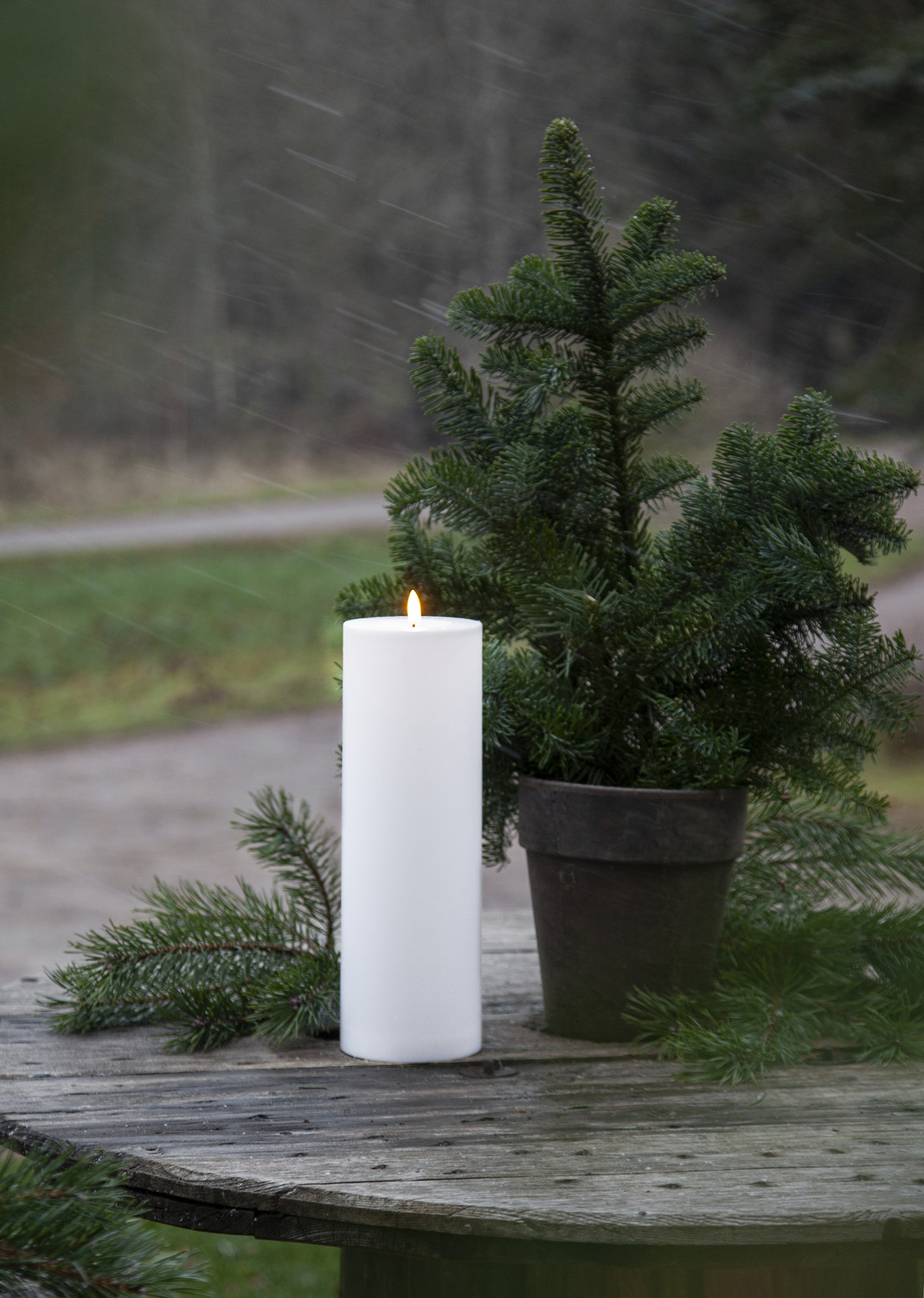Flamme Rak on elegantne ja kõrge LED-küünal, mille realistlik leek loob hubase valguse nii sise- kui ka välistingimustes. Küünal sobib suurepäraselt näiteks laternatesse või koos teiste Flamme sarja küünaldega. Valikus on kaks töörežiimi – hämarussensor või taimer, mida saab valida lüliti abil.