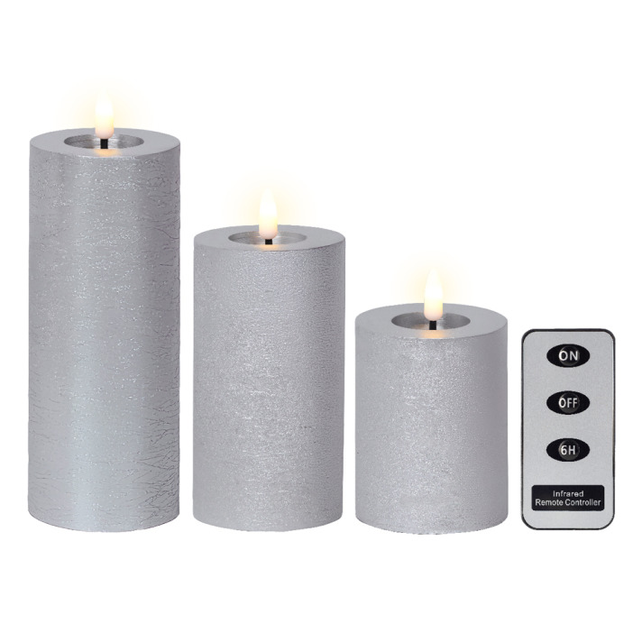 Hubase valguse loomiseks sobib suurepäraselt LED-küünalde kolmik, mis ühendab klassikalise küünla välimuse ja kaasaegse ohutuse. Hõbedase viimistlusega küünlad kiirgavad sooja valget valgust, pakkudes rahulikku ja naturaalset kuma. Komplektis on kaasas ka kaugjuhtimispult, mis võimaldab mugavalt valgust sisse või välja lülitada ning kasutada taimerit.