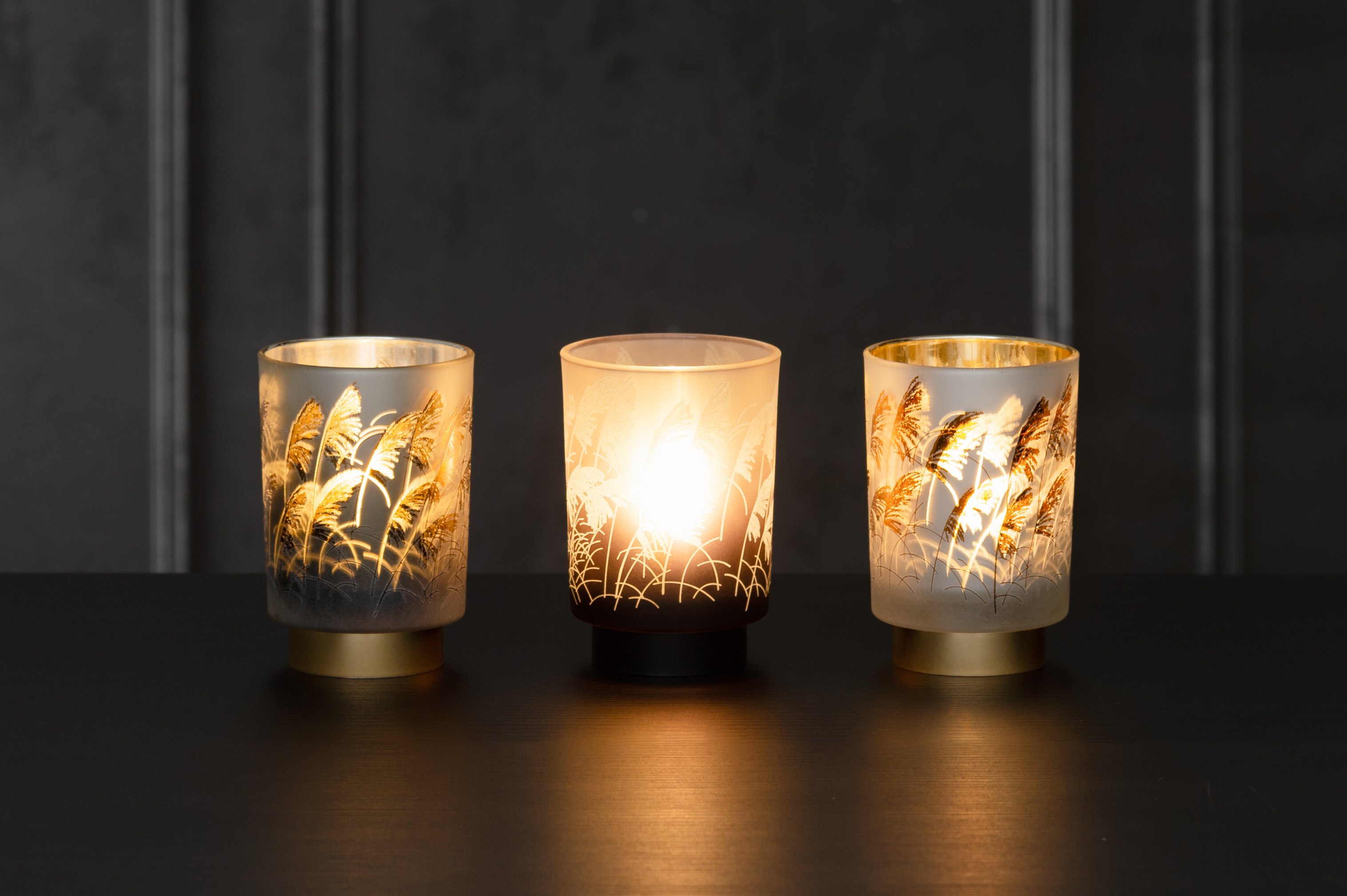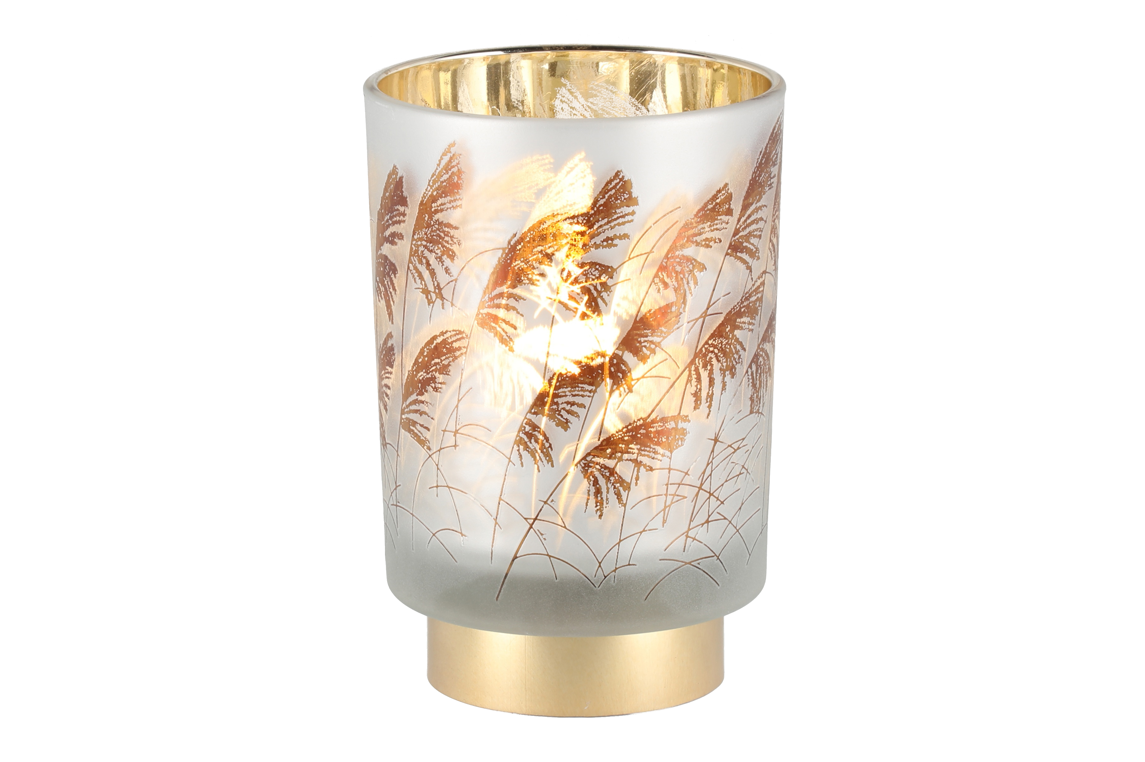 Klaasist heinamustriga dekoratiivlamp. Klaasi sees olev LED-tuli paneb dekoratiivmustri kaunilt särama.