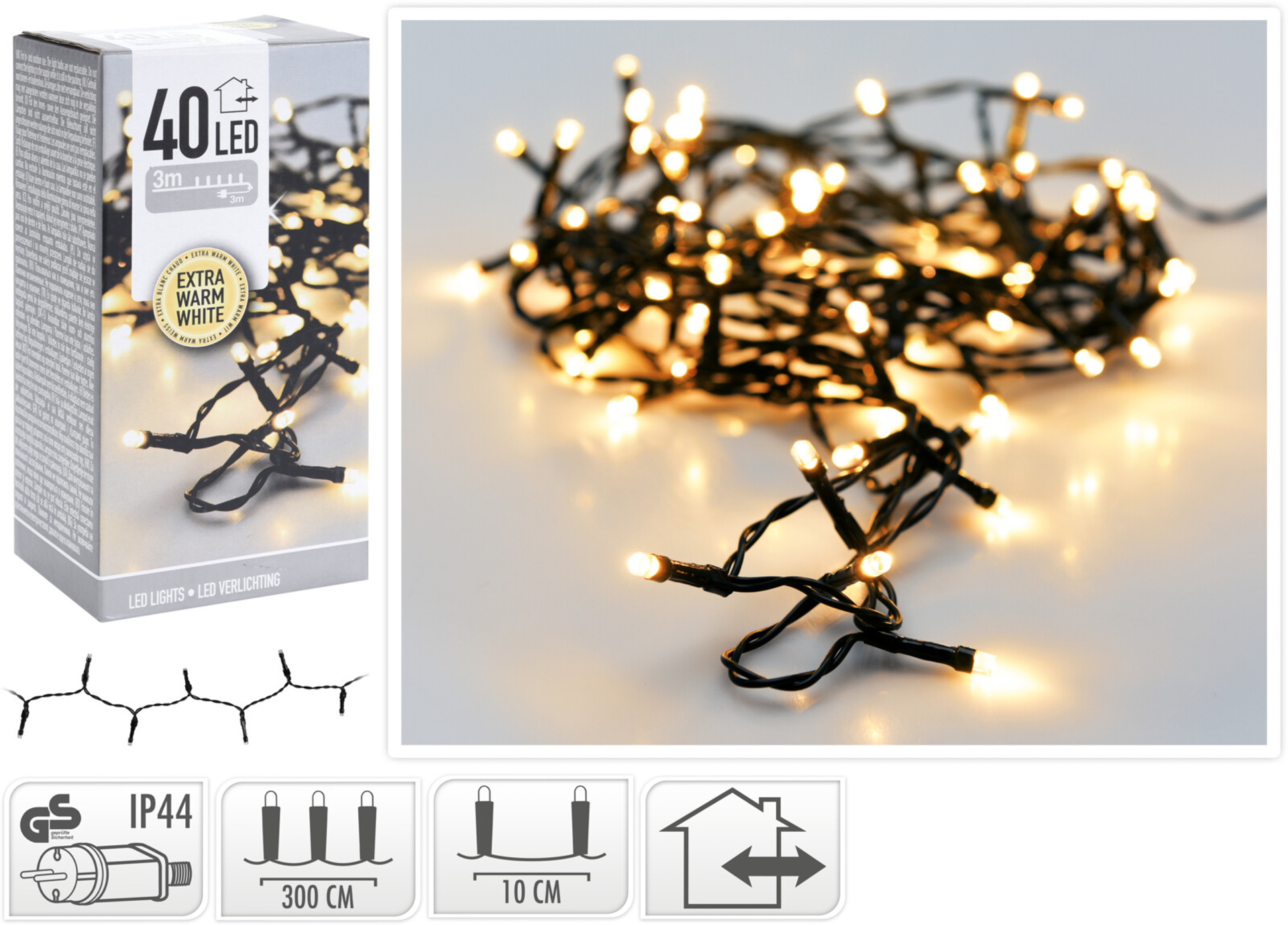 LED valguskett 40 sooja valge tulukesega sobib ideaalselt nii sise- kui ka välistingimustes kasutamiseks. Ligikaudu 3 meetri pikkune valguskett on suurepärane väiksemate jõulupuude, pärgade või muude dekoratiivelementide õrnaks valgustamiseks. Soe valge valgus loob hubase ja piduliku meeleolu igas ruumis või õuealal.
