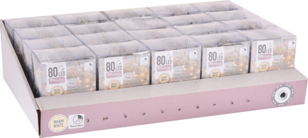 Loo hubane ja soe õhkkond nende patareitoitega LED-valgustitega. Valguskett on ligikaudu 8 meetrit pikk ning sisaldab 80 sooja valge LED-tulukest, mis on ühtlaselt jaotatud kogu keti ulatuses. Kett on varustatud umbes 30 cm pikkuse toitekaabliga ja töötab 3 AA patareiga (ei kuulu komplekti). Need tuled sobivad ideaalselt siseruumides kasutamiseks ning on suurepärane valik jõulupuude, aknalauade või pärgade kaunistamiseks.