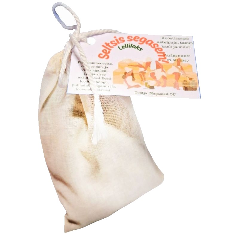 Leililaks Seltsis segasem on kuivatatud taimede seguga leililisa, mis annab saunale mitmekülgse ja tasakaalustatud aroomi. Kase ja tamme mahedale põhjale lisavad värskust münt ning kerget hapukust astelpaju, luues ühtlase ja meeldiva lõhnakoosluse.
